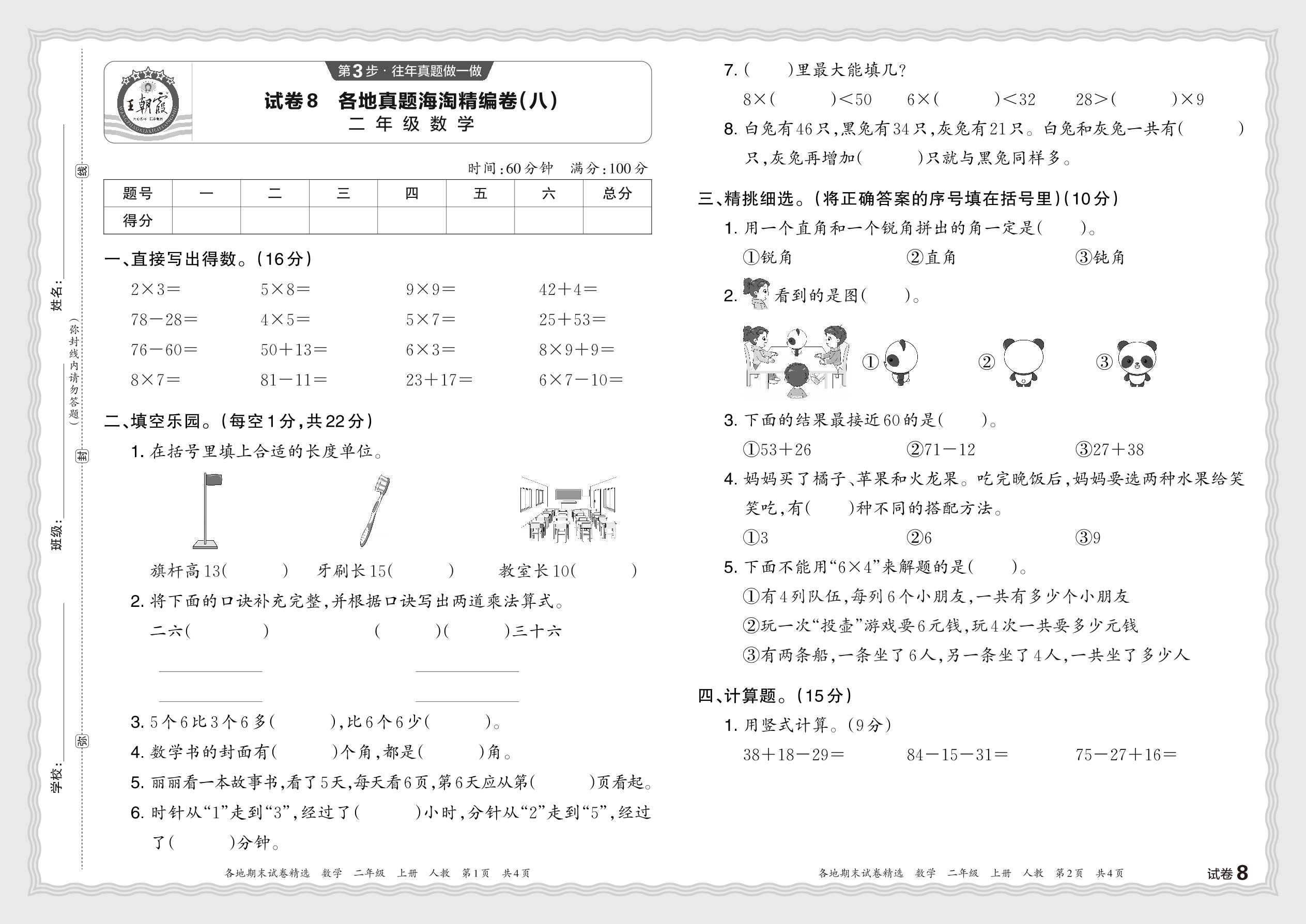 2023秋上册二年级数学人教版 各地真题海淘精编卷(八)JX