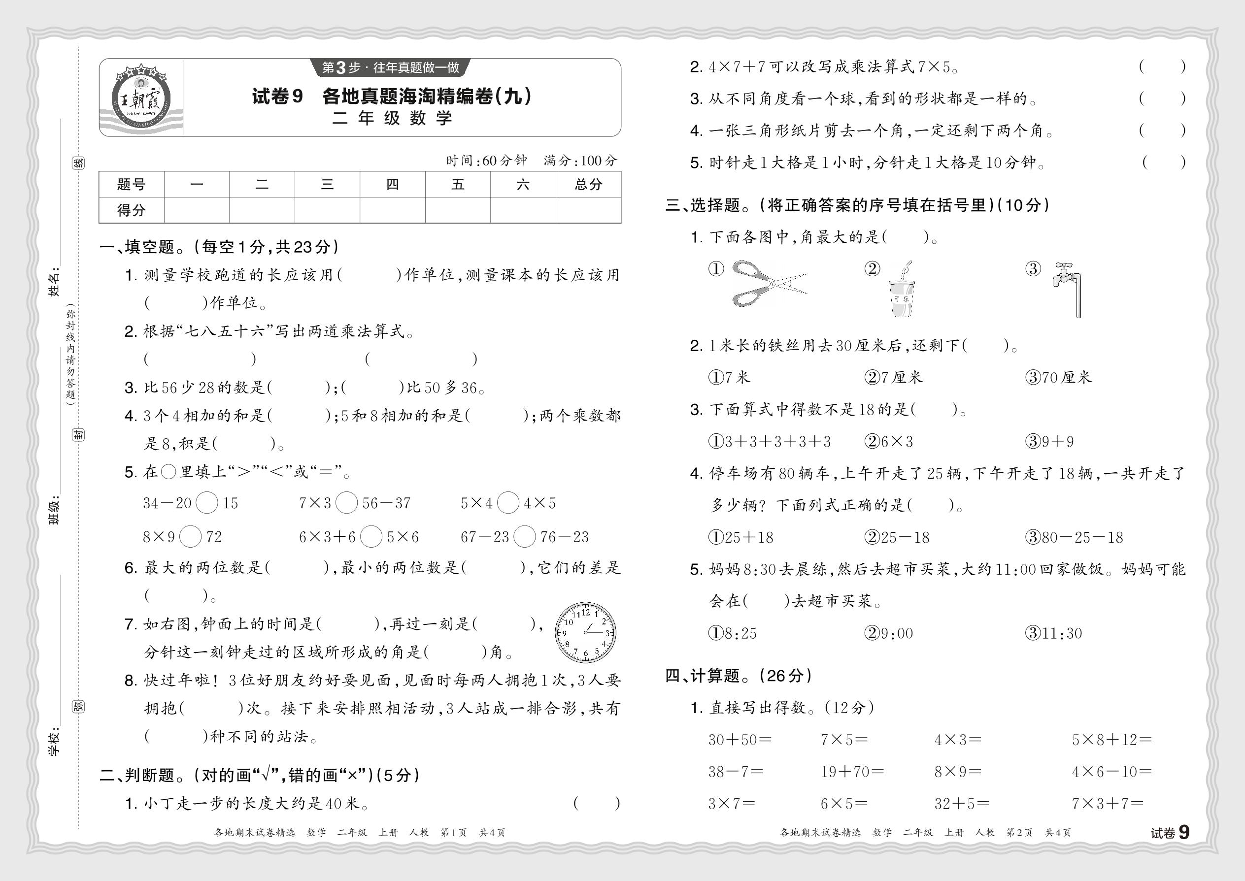 2023秋上册二年级数学人教版 各地真题海淘精编卷(九)JX
