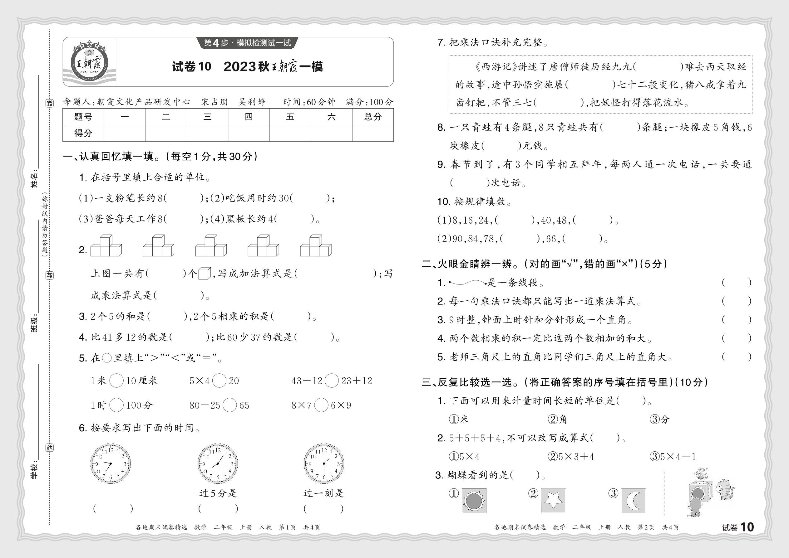 2023秋上册二年级数学人教版 王朝霞一模JX