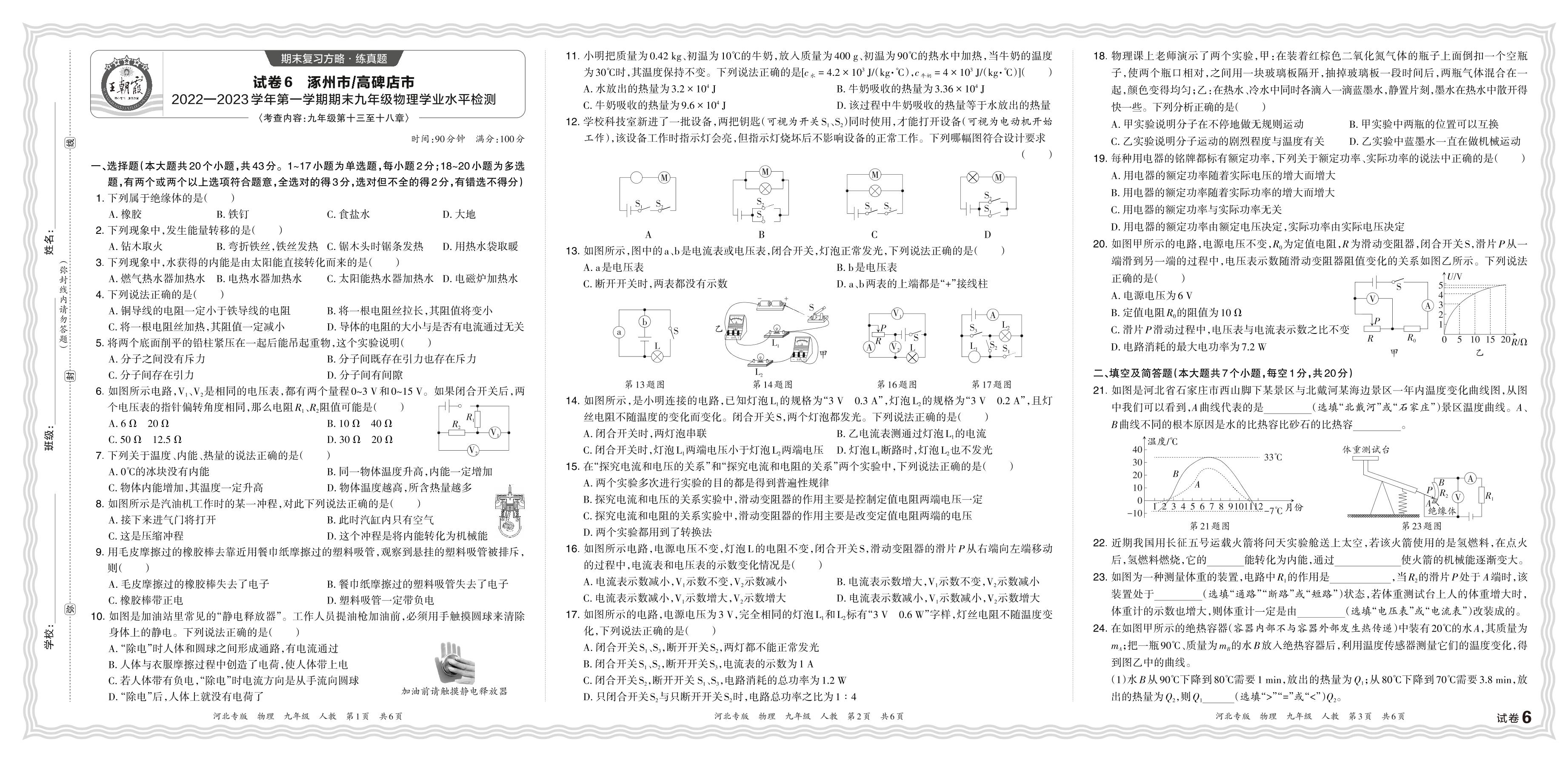 河北省保定市涿州市、高碑店市2022—2023学年第一学期期末九年级物理学业水平检测(人教版)【6】