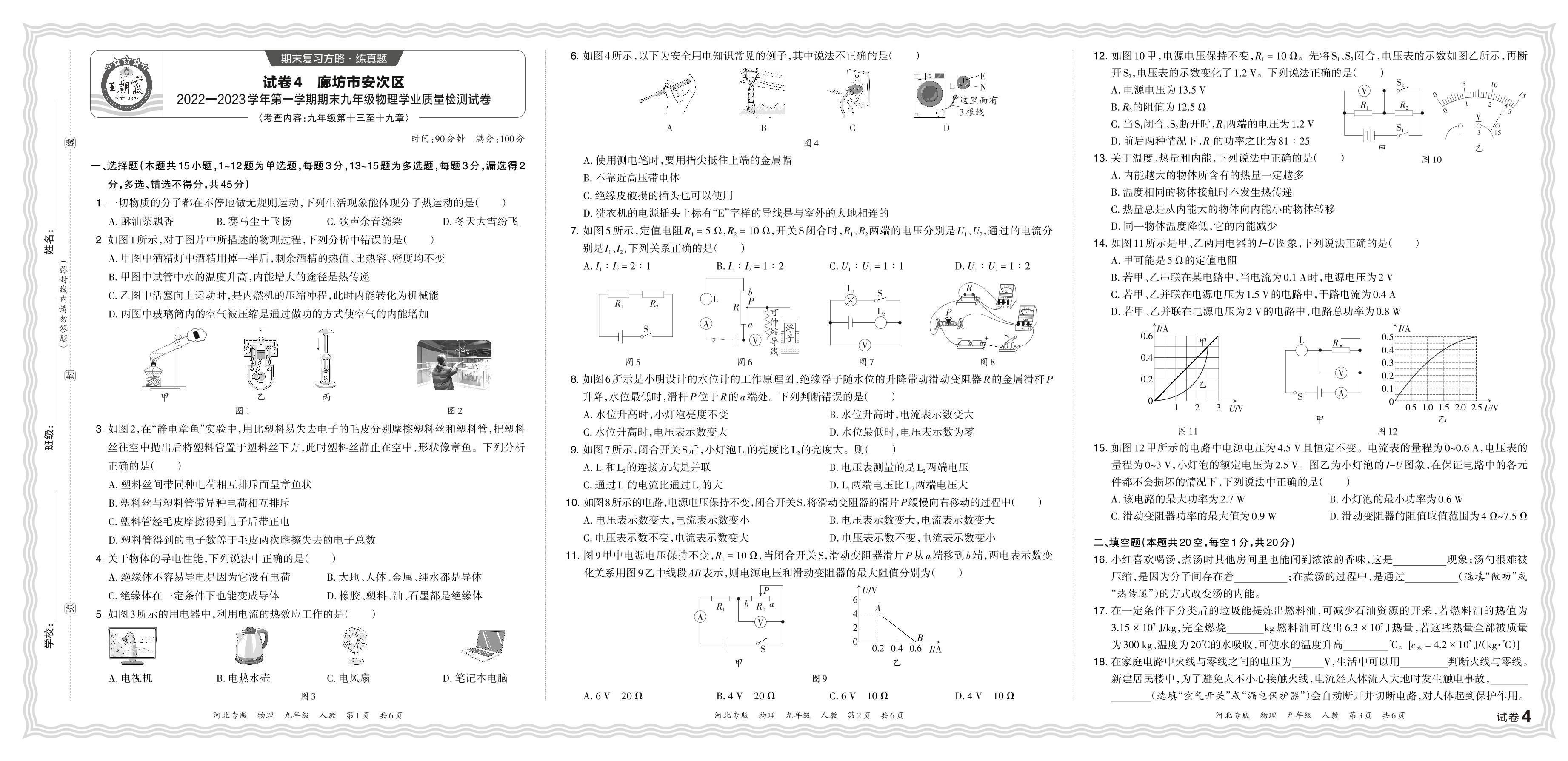 河北省廊坊市安次区2022—2023学年第一学期期末九年级物理学业质量检测试卷(人教版)【4】