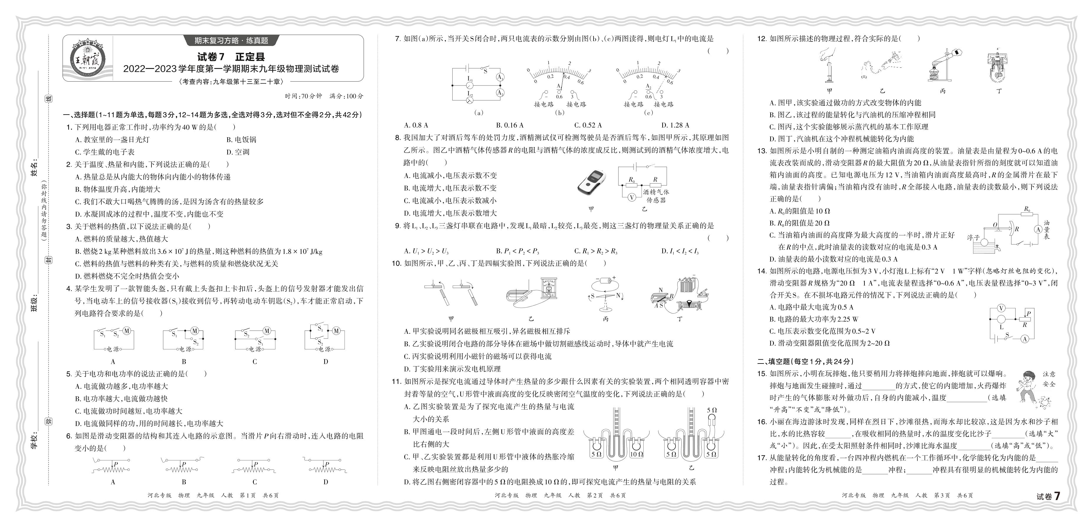 河北省石家庄市正定县2022—2023学年度第一学期期末九年级物理测试试卷(人教版)【7】