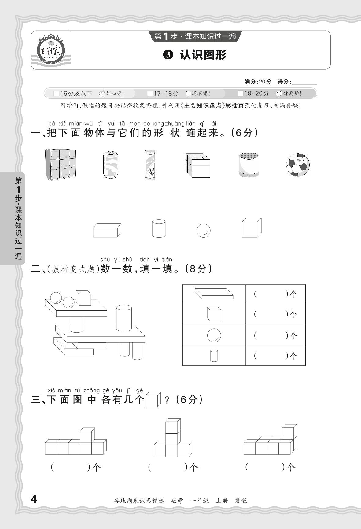 2023秋上册一年级数学冀教版 期末过课本JX版·认识图形【3】