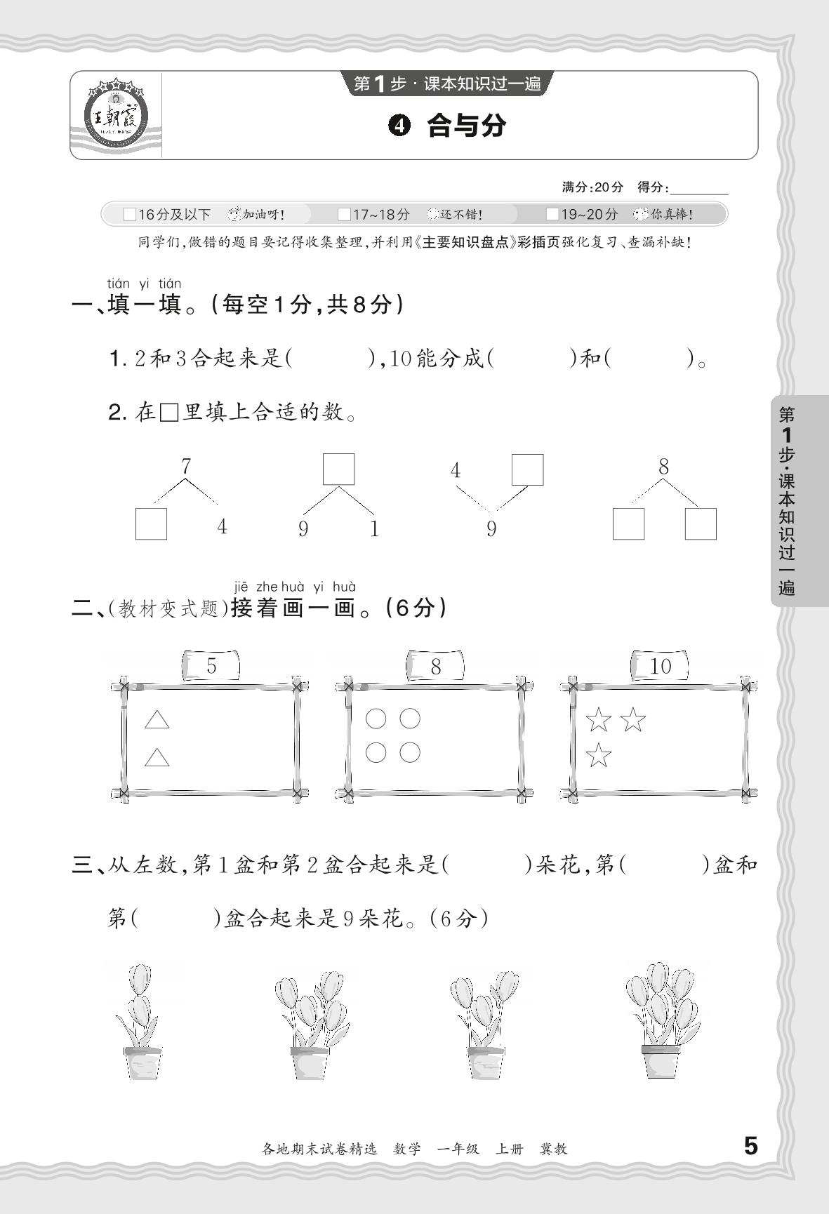 2023秋上册一年级数学冀教版 期末过课本JX版·合与分【4】