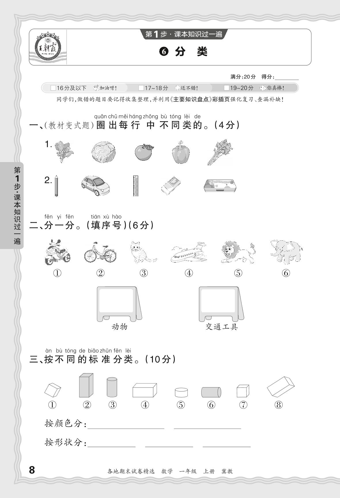 2023秋上册一年级数学冀教版 期末过课本JX版·分类【6】