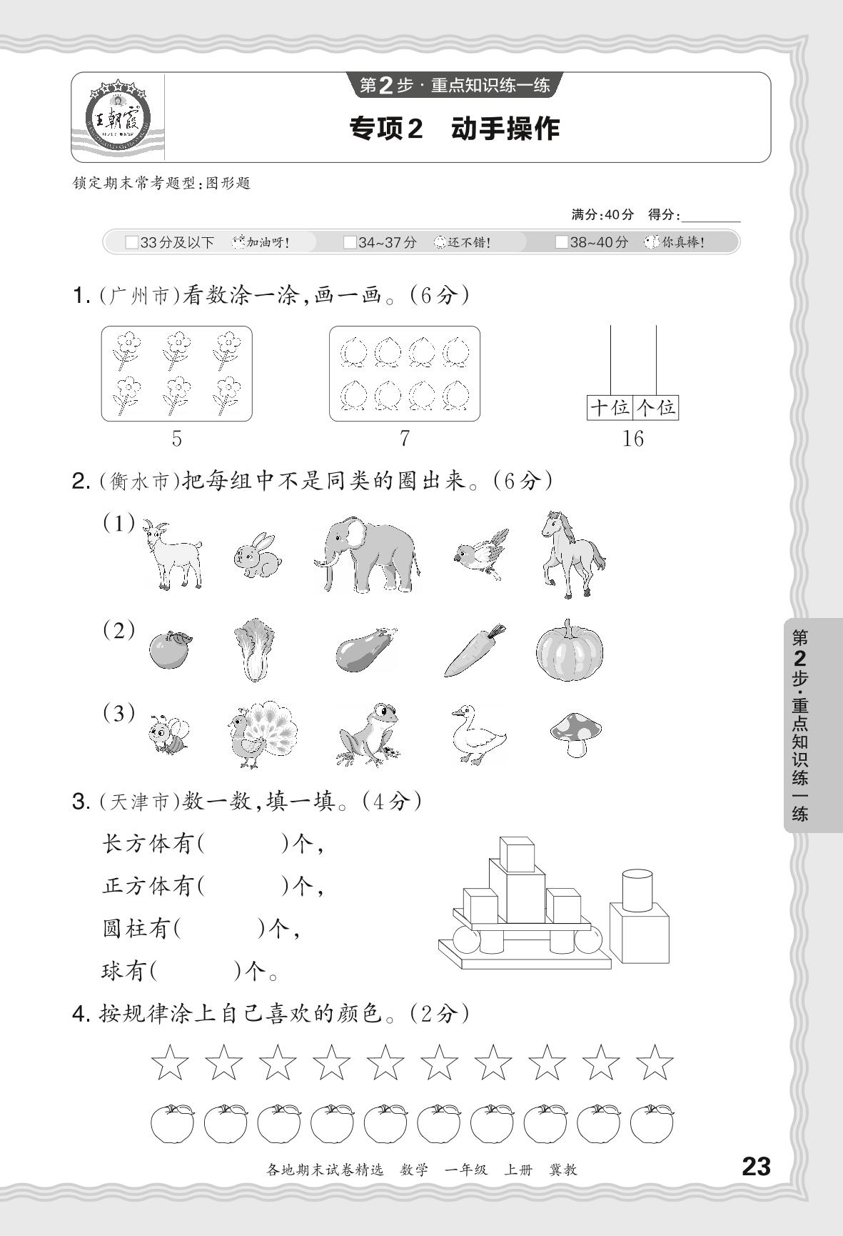 2023秋上册一年级数学冀教版 期末专项卷JX版·动手操作【2】
