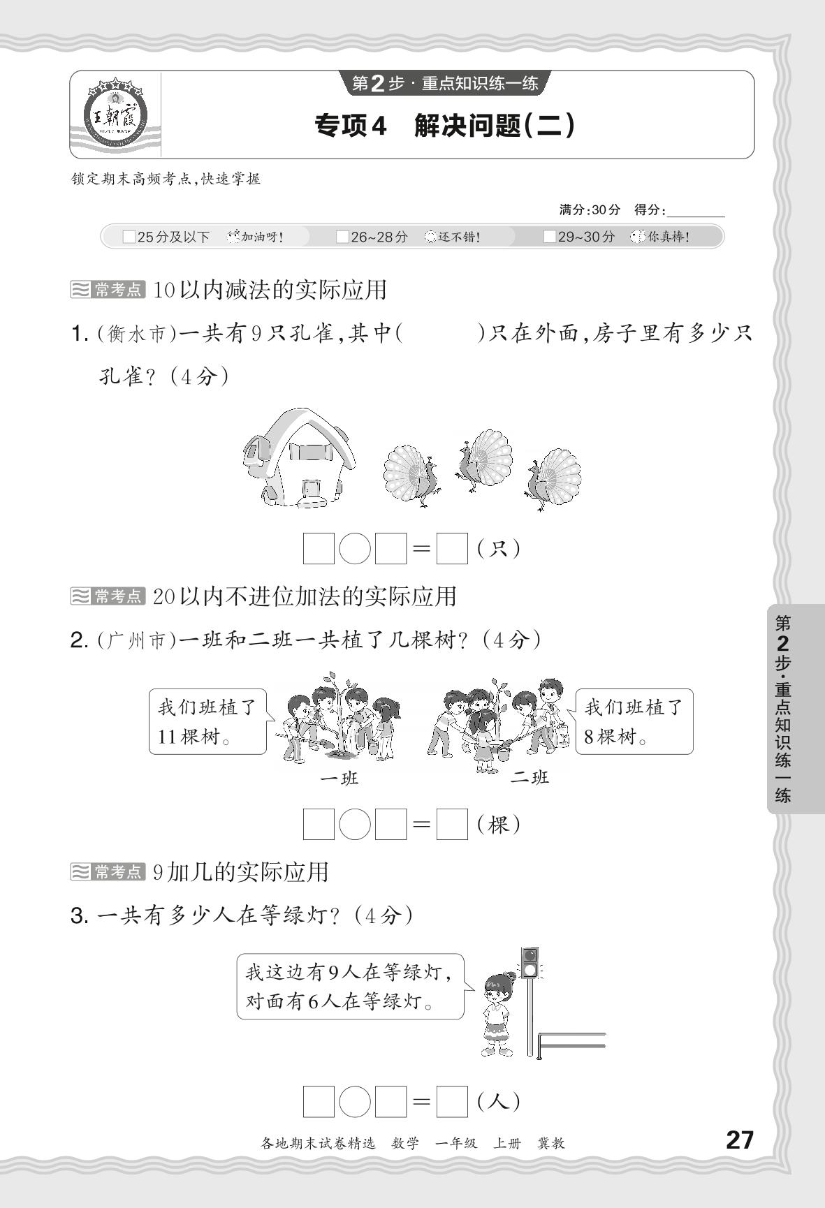 2023秋上册一年级数学冀教版 期末专项卷JX版·解决问题(二)【4】