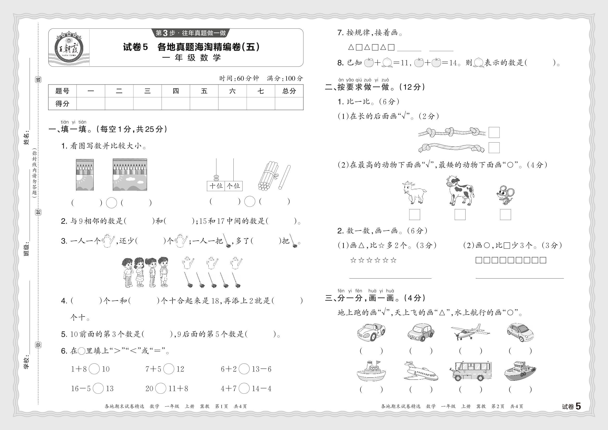 2023秋上册一年级数学冀教版 各地真题海淘精编卷(五)JX