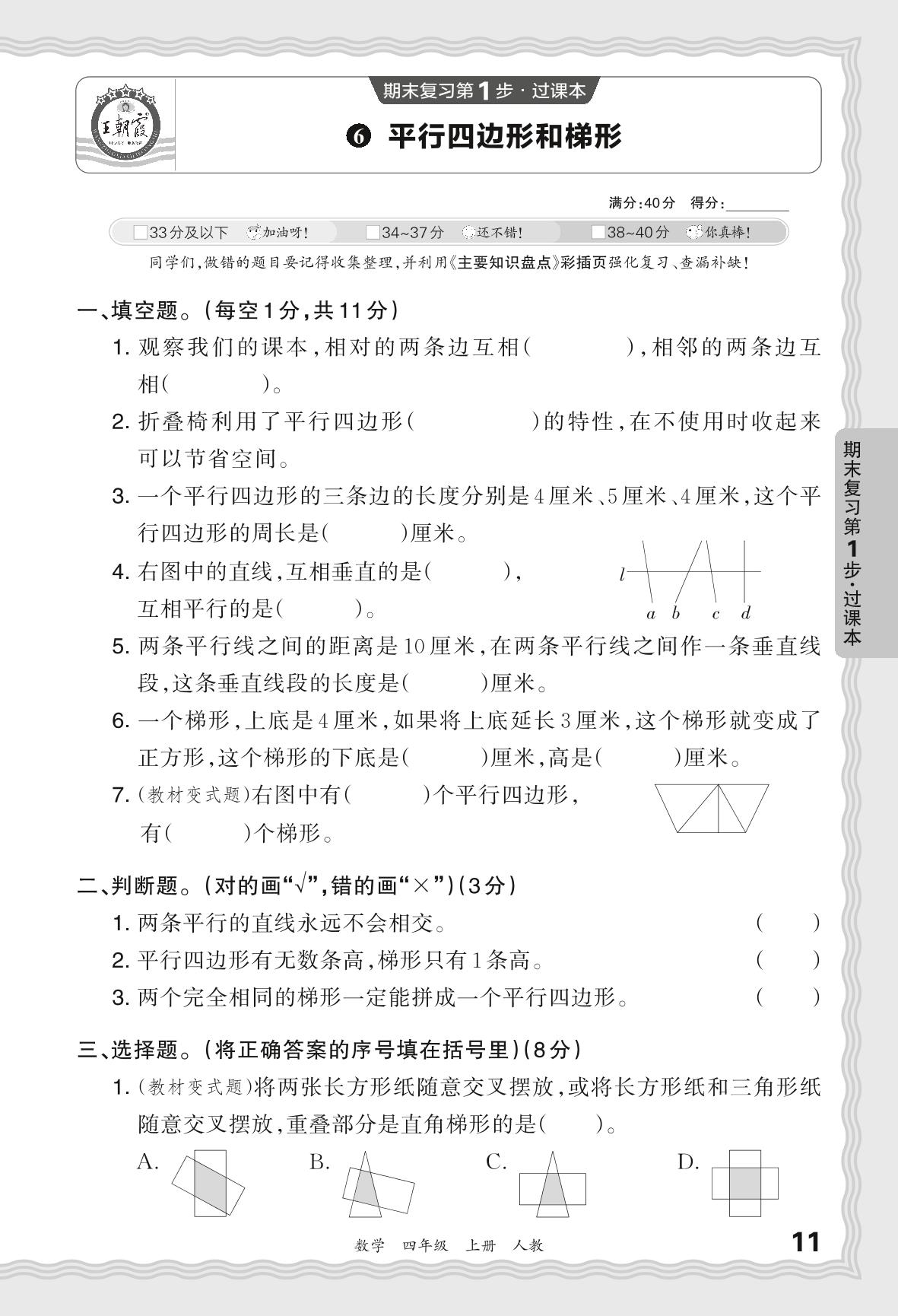 2023秋上册四年级数学人教版 期末过课本QMA版·平行四边形和梯形【6】
