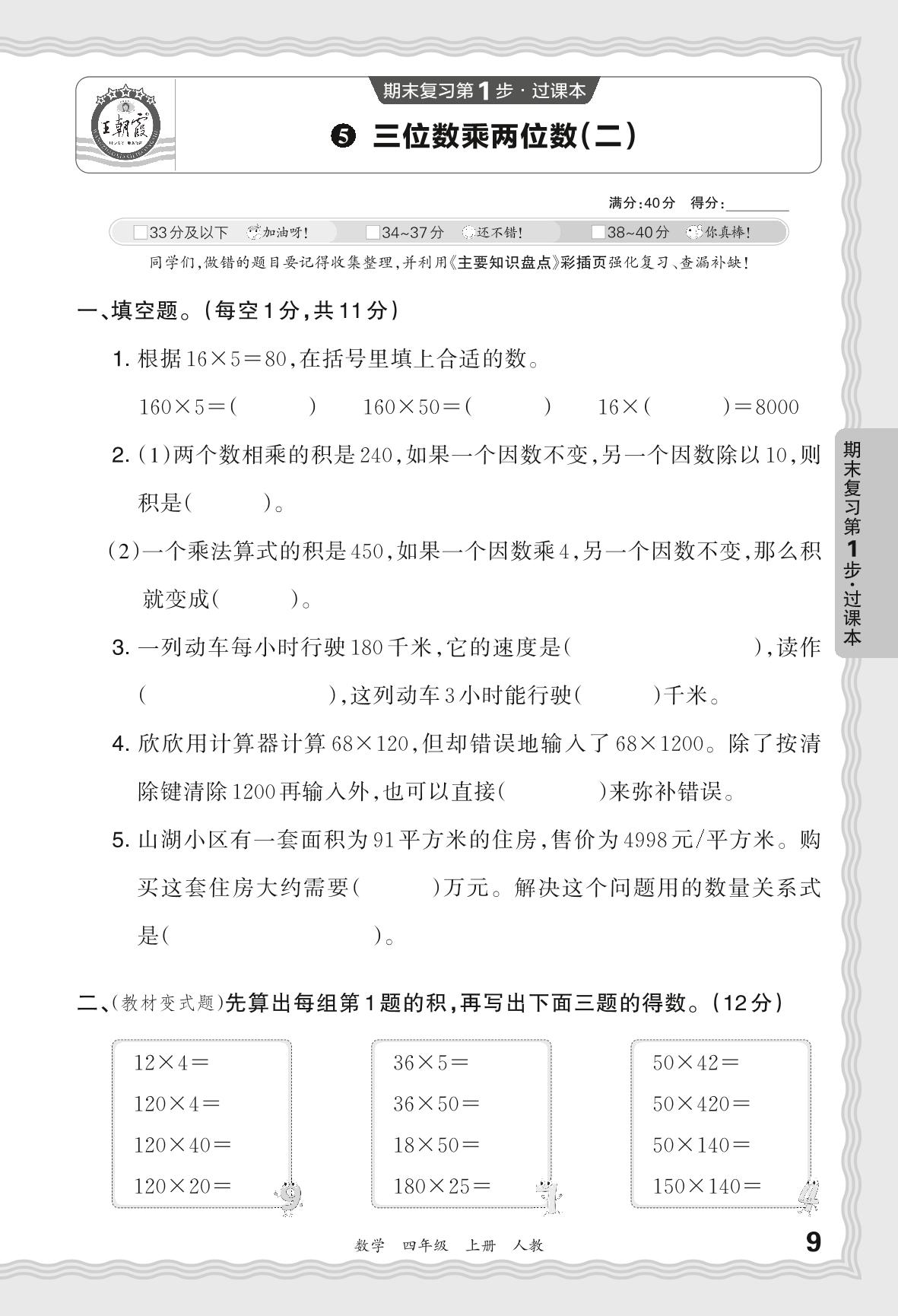 2023秋上册四年级数学人教版 期末过课本QMA版·三位数乘两位数(二)【5】