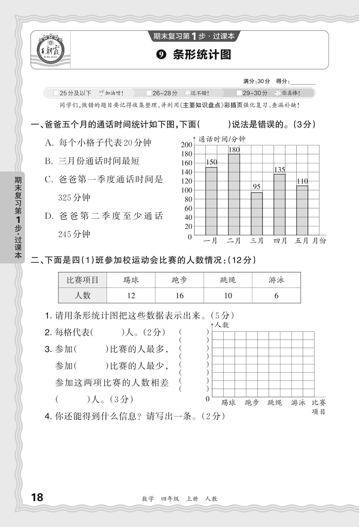 2023秋上册四年级数学人教版 期末过课本QMA版·条形统计图【9】