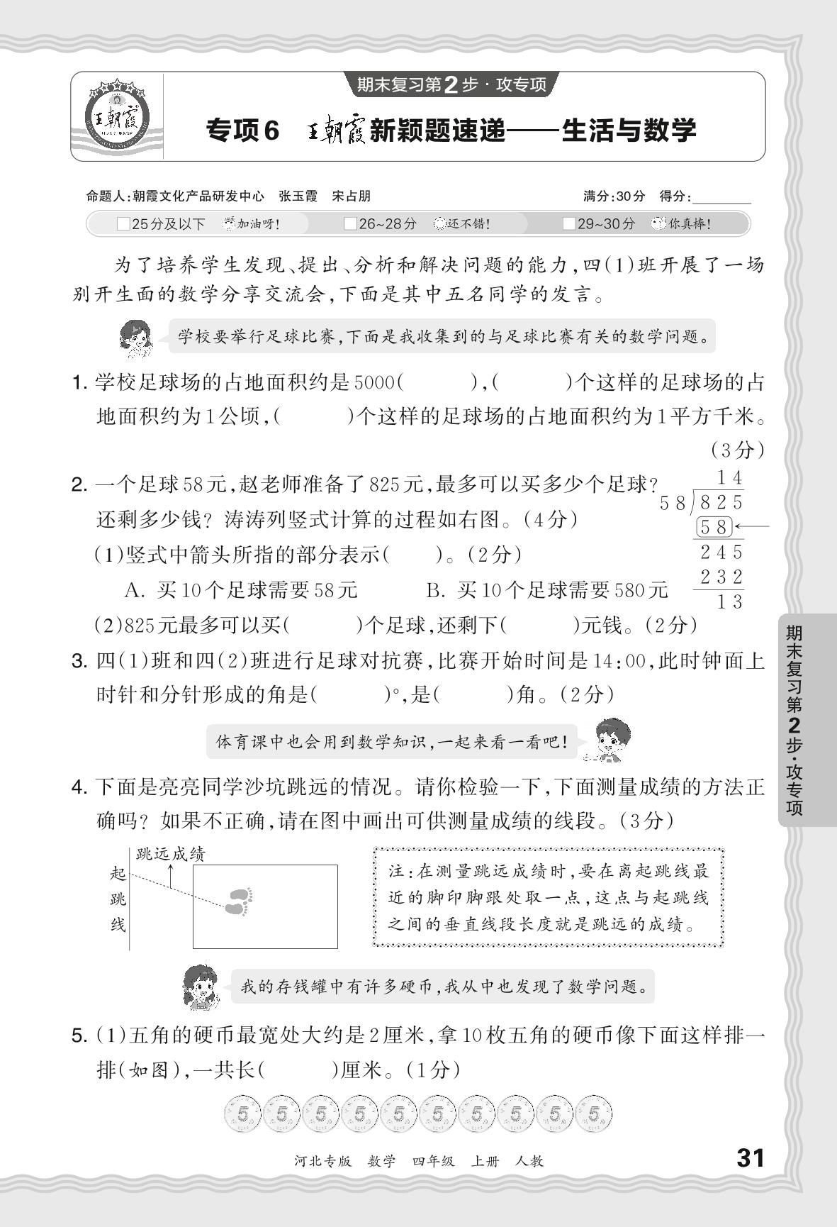 2023秋上册四年级数学人教版 期末专项·王朝霞新颖题速递——生活与数学【6】