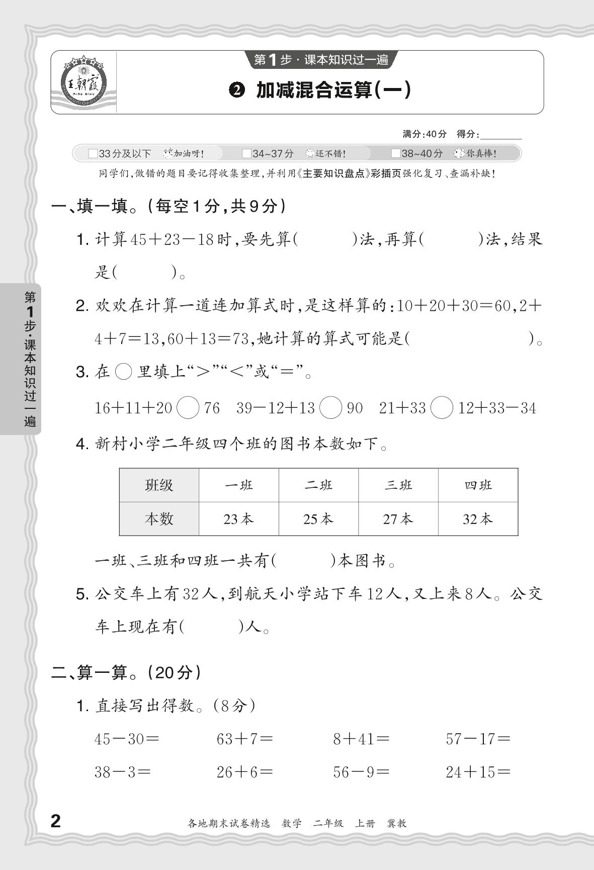2023秋上册二年级数学冀教版 期末过课本JX版·加减混合运算(一)【2】