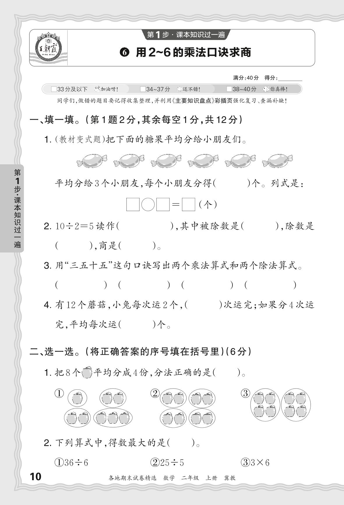 2023秋上册二年级数学冀教版 期末过课本JX版·用2-6的乘法口诀求商【6】
