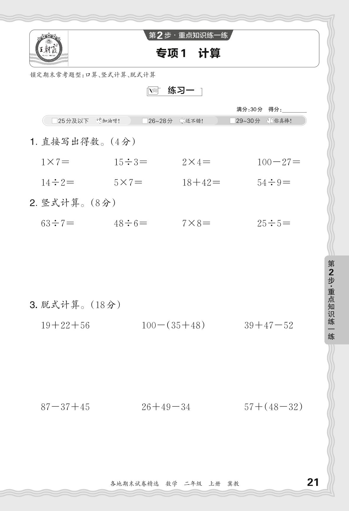 2023秋上册二年级数学冀教版 期末专项卷JX版·计算【1】