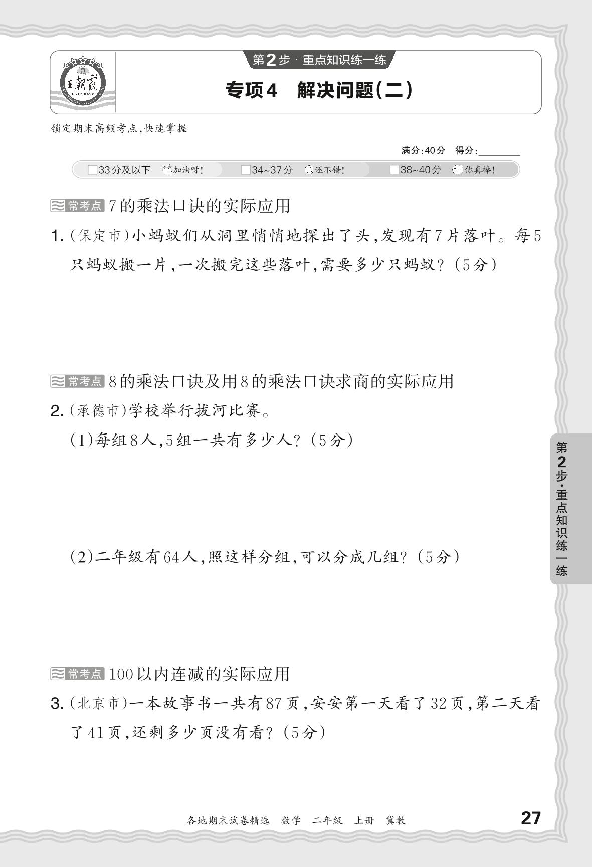 2023秋上册二年级数学冀教版 期末专项卷JX版·解决问题(二)【4】