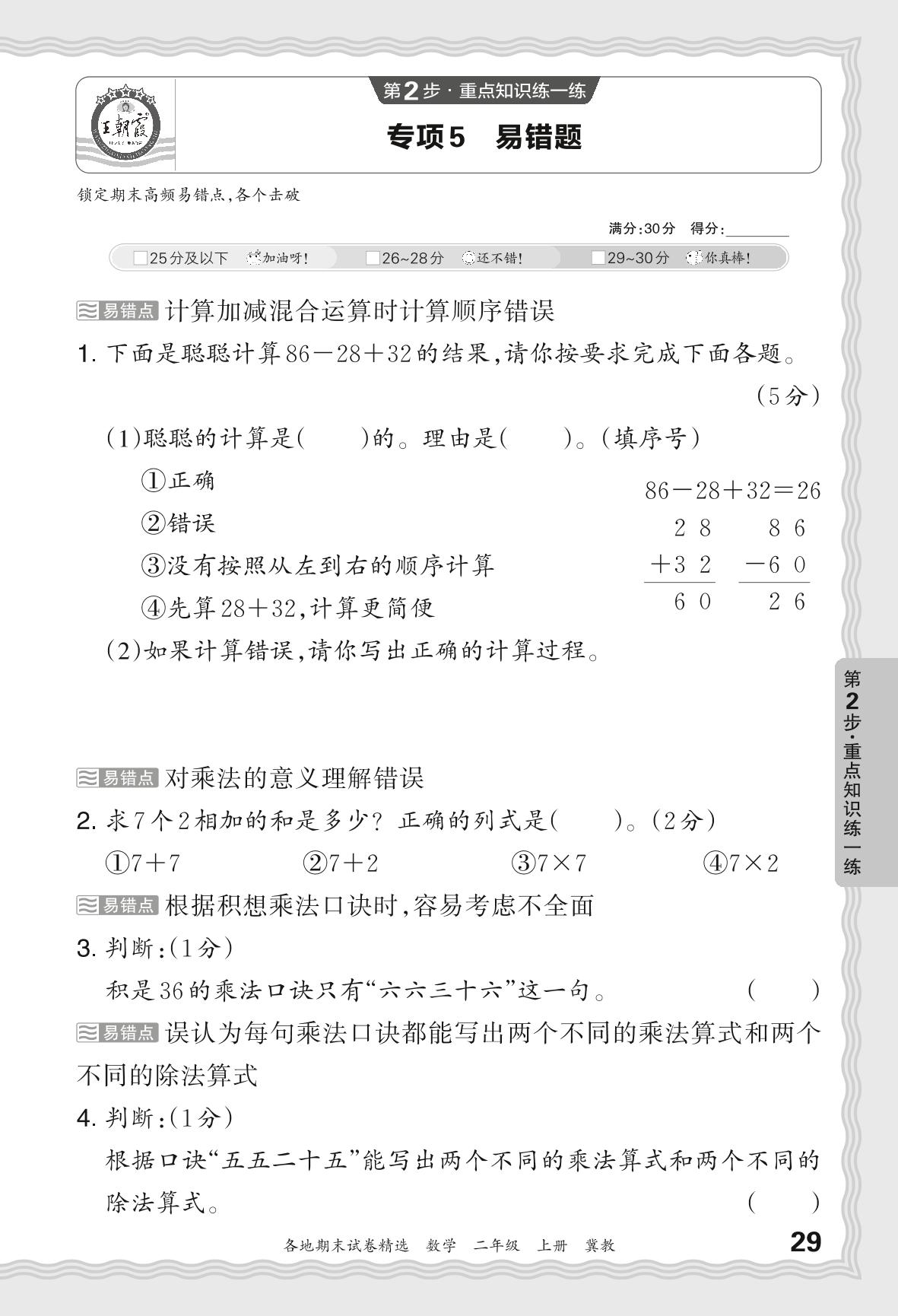 2023秋上册二年级数学冀教版 期末专项卷JX版·易错题【5】