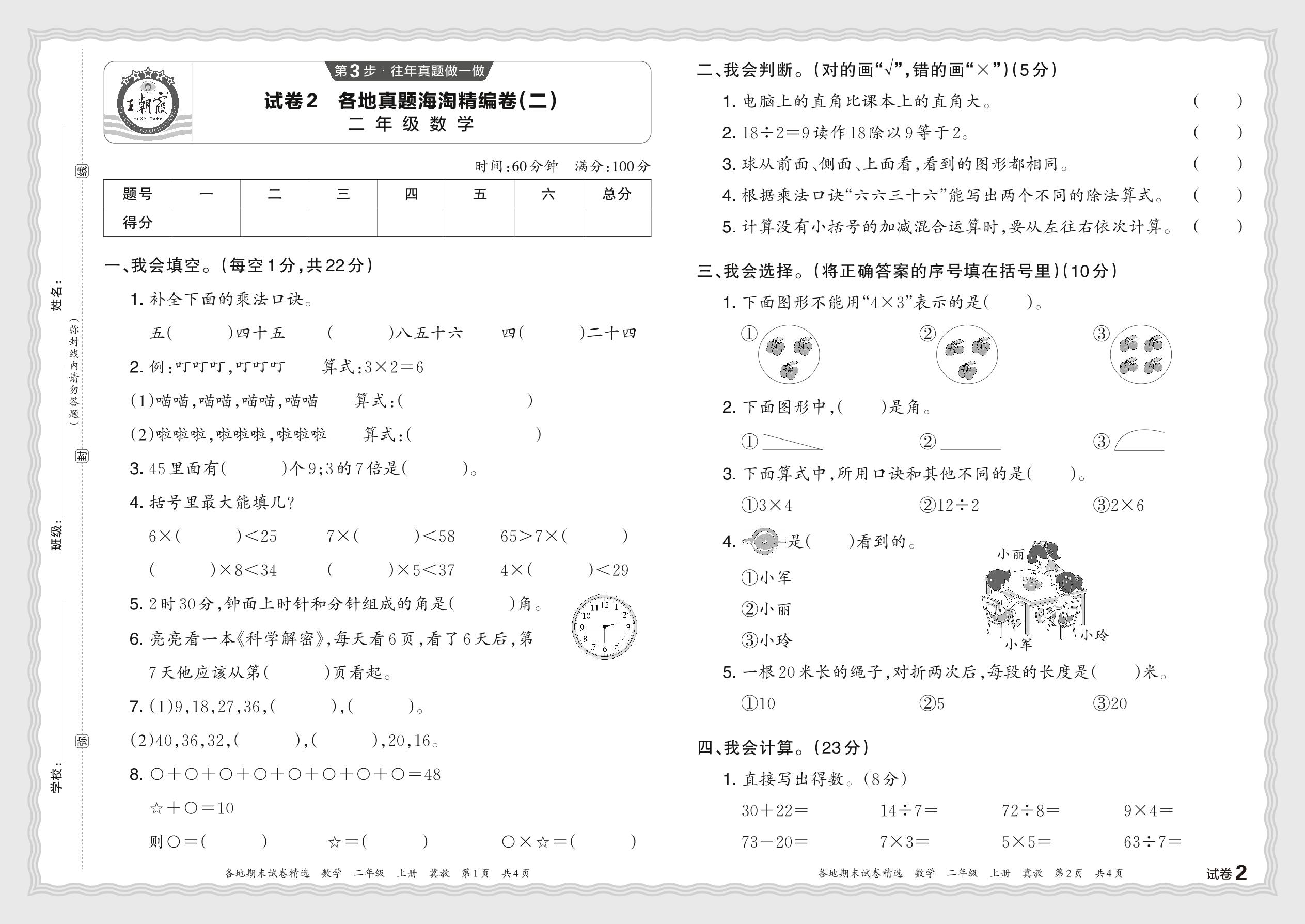 2023秋上册二年级数学冀教版 各地真题海淘精编卷(二)JX