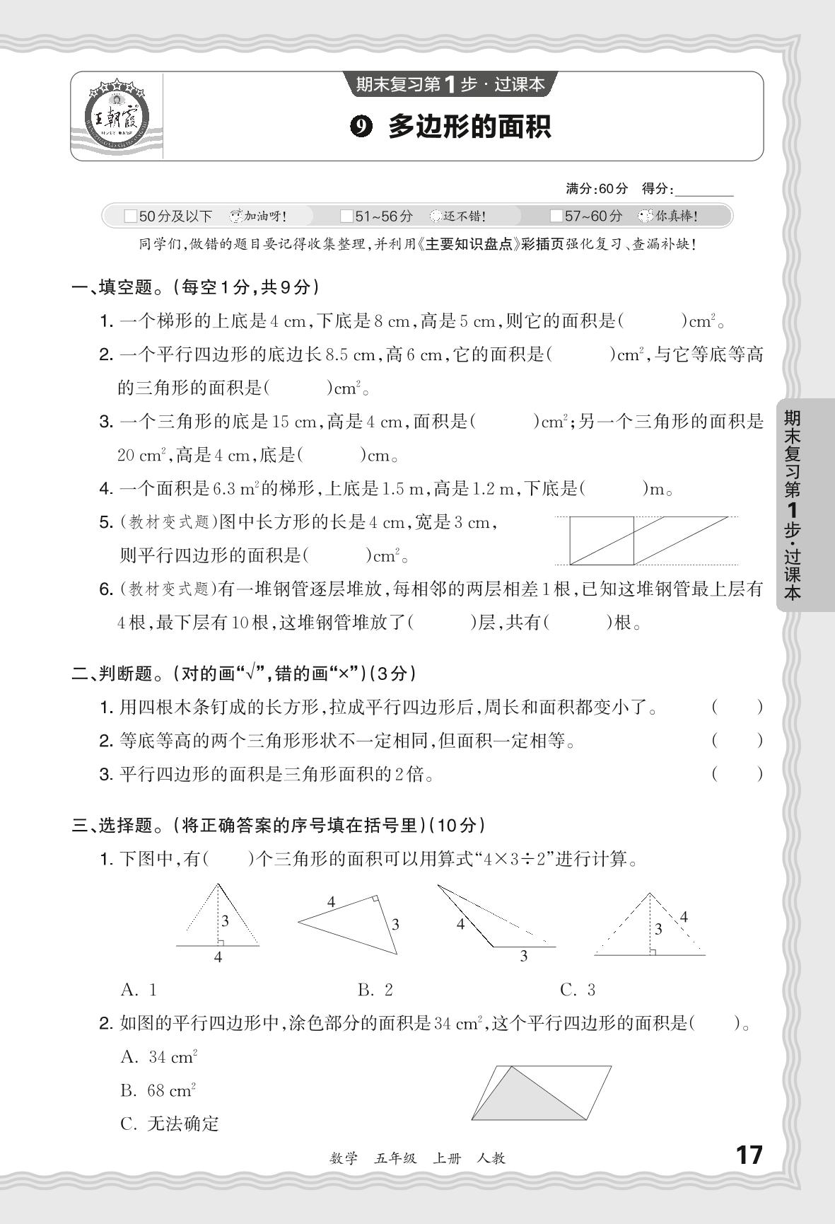 2023秋上册五年级数学人教版 期末过课本QMA版·多边形的面积【9】