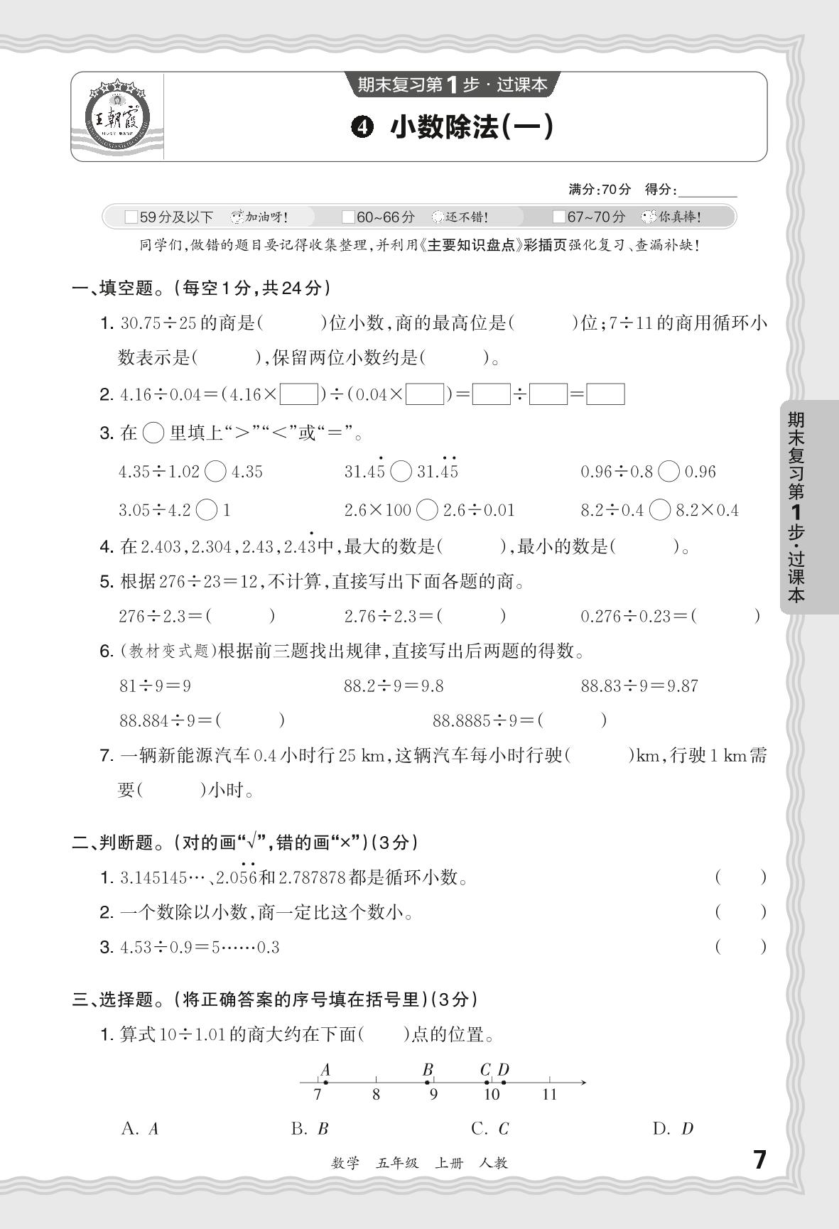 2023秋上册五年级数学人教版 期末过课本QMA版·小数除法(一)【4】