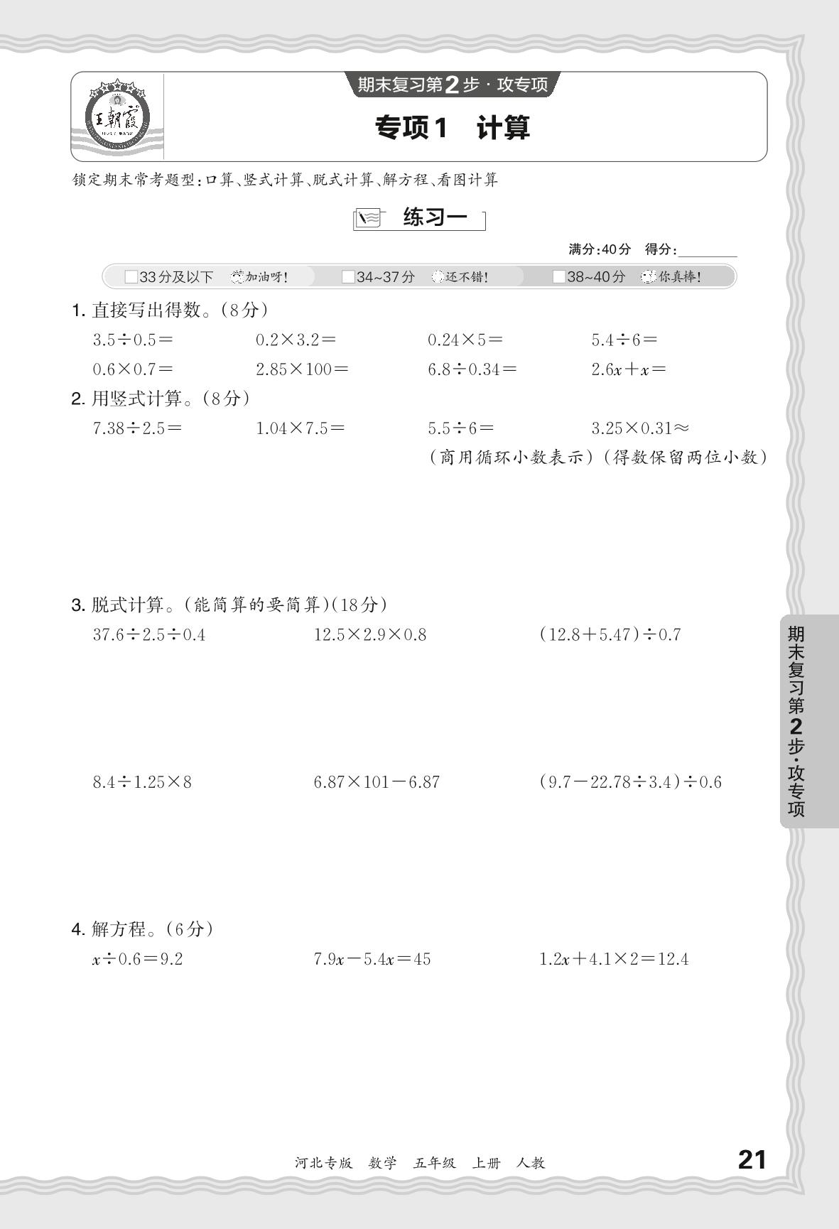 五年级数学人教版上册专项卷