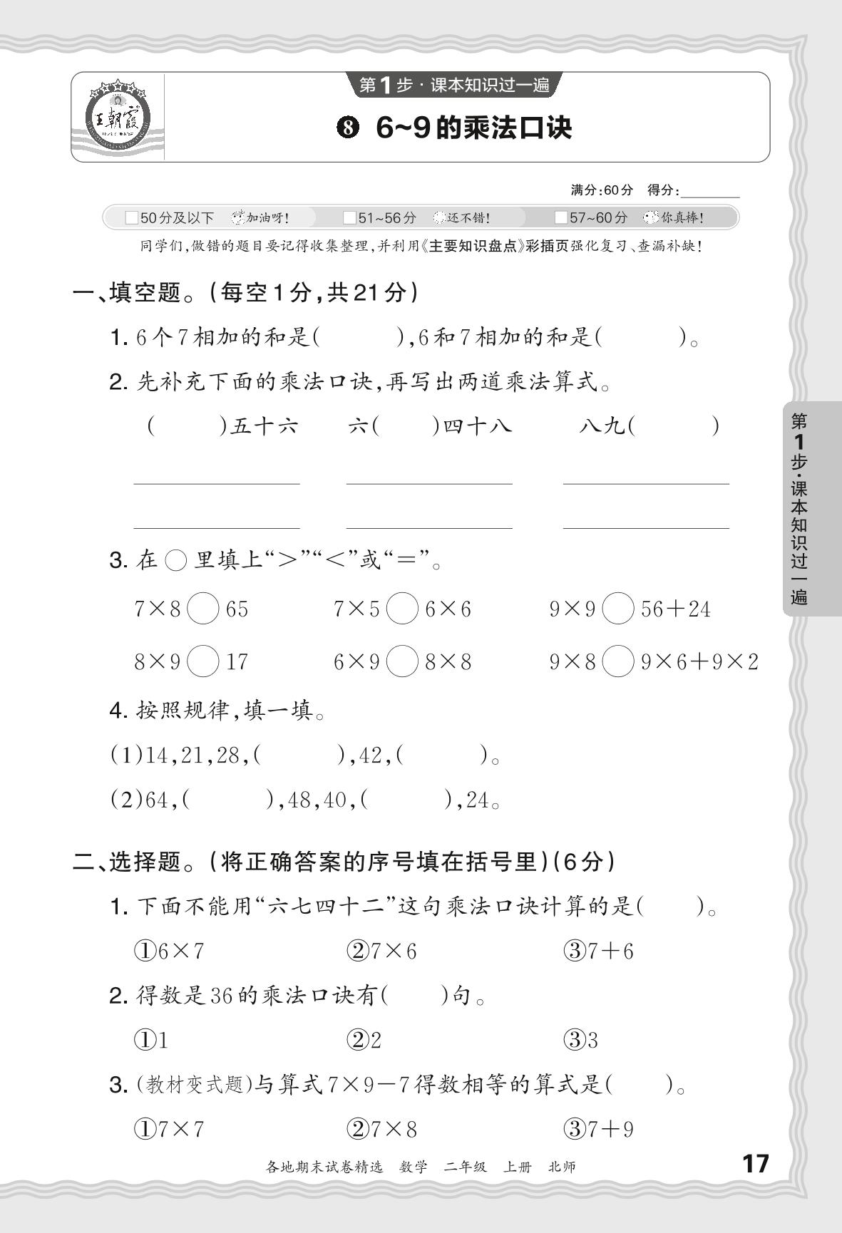 2023秋上册二年级数学北师版 期末过课本JX版·6-8的乘法口诀【8】