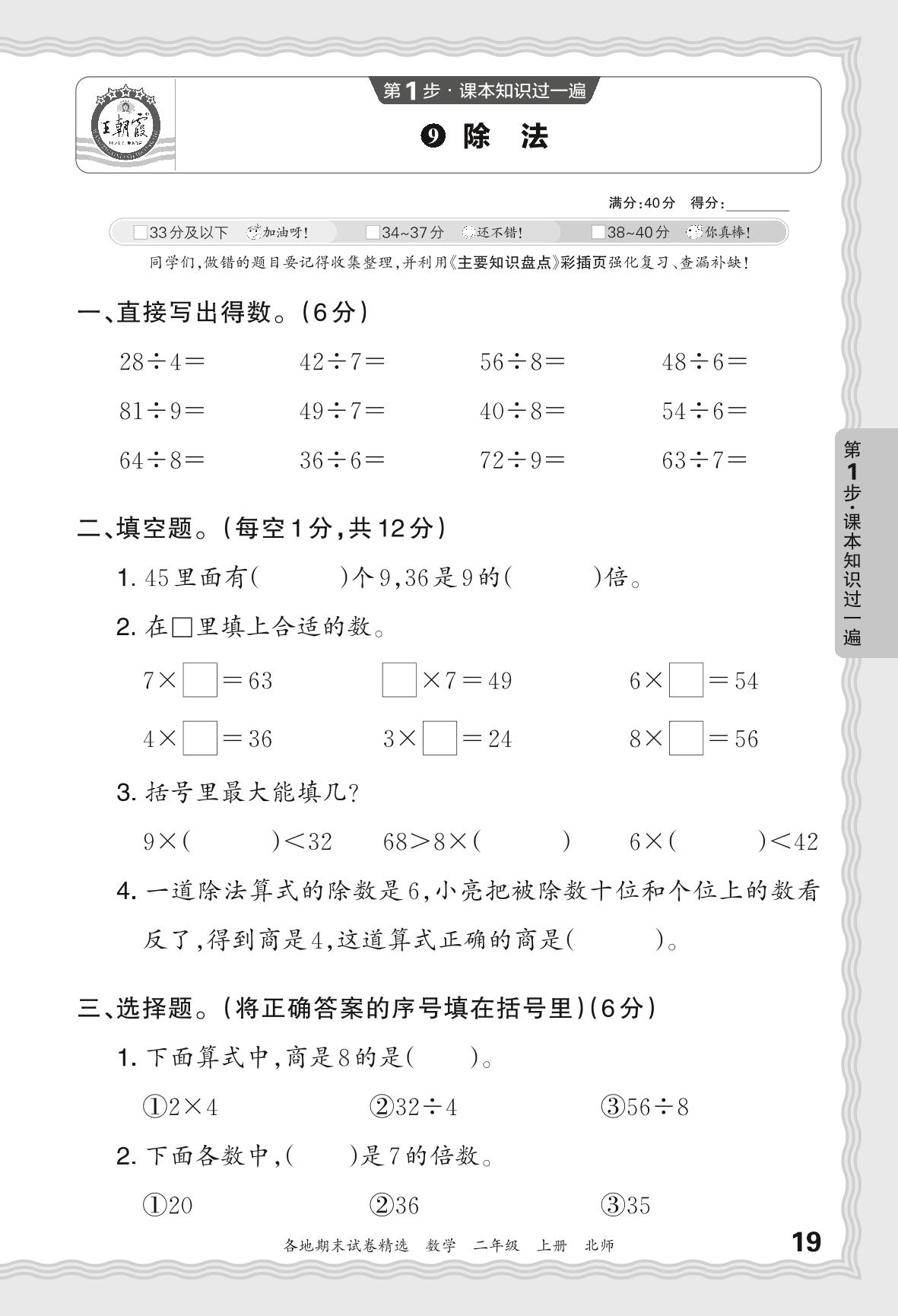 2023秋上册二年级数学北师版 期末过课本JX版·除法【9】