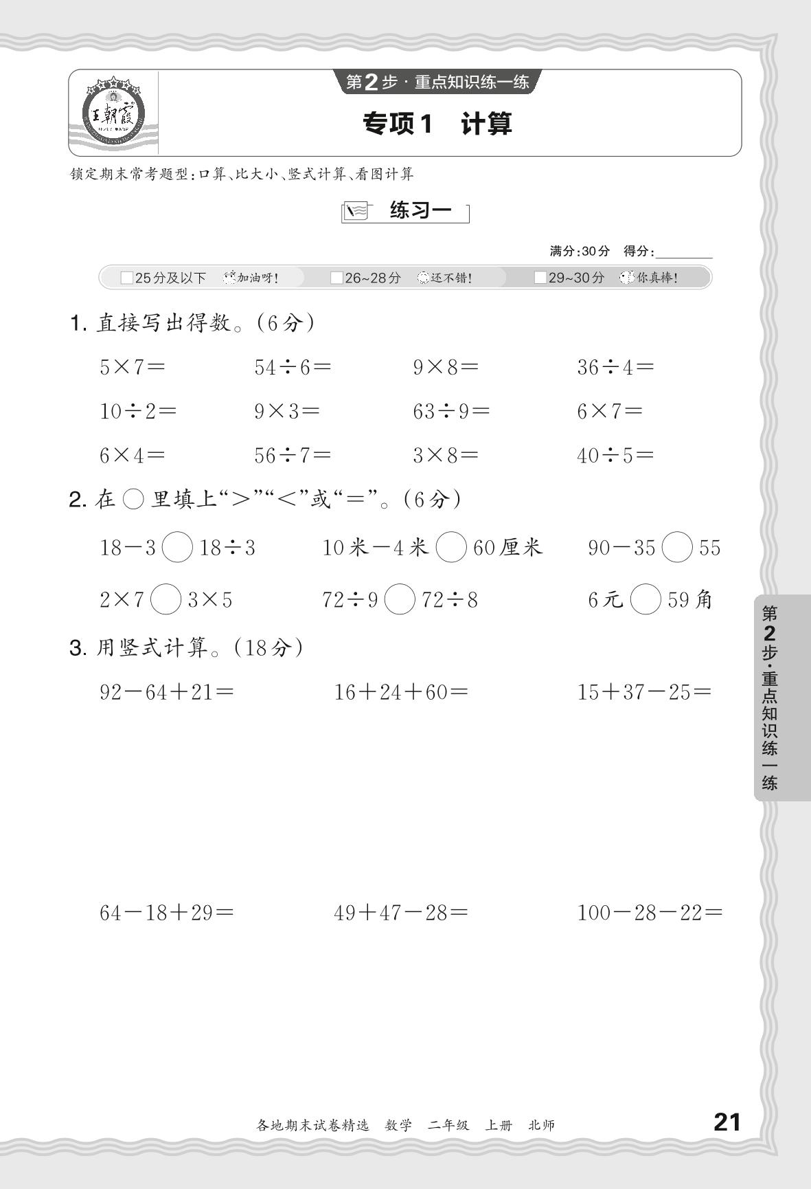 2023秋上册二年级数学北师版 期末专项卷JX版·计算【1】