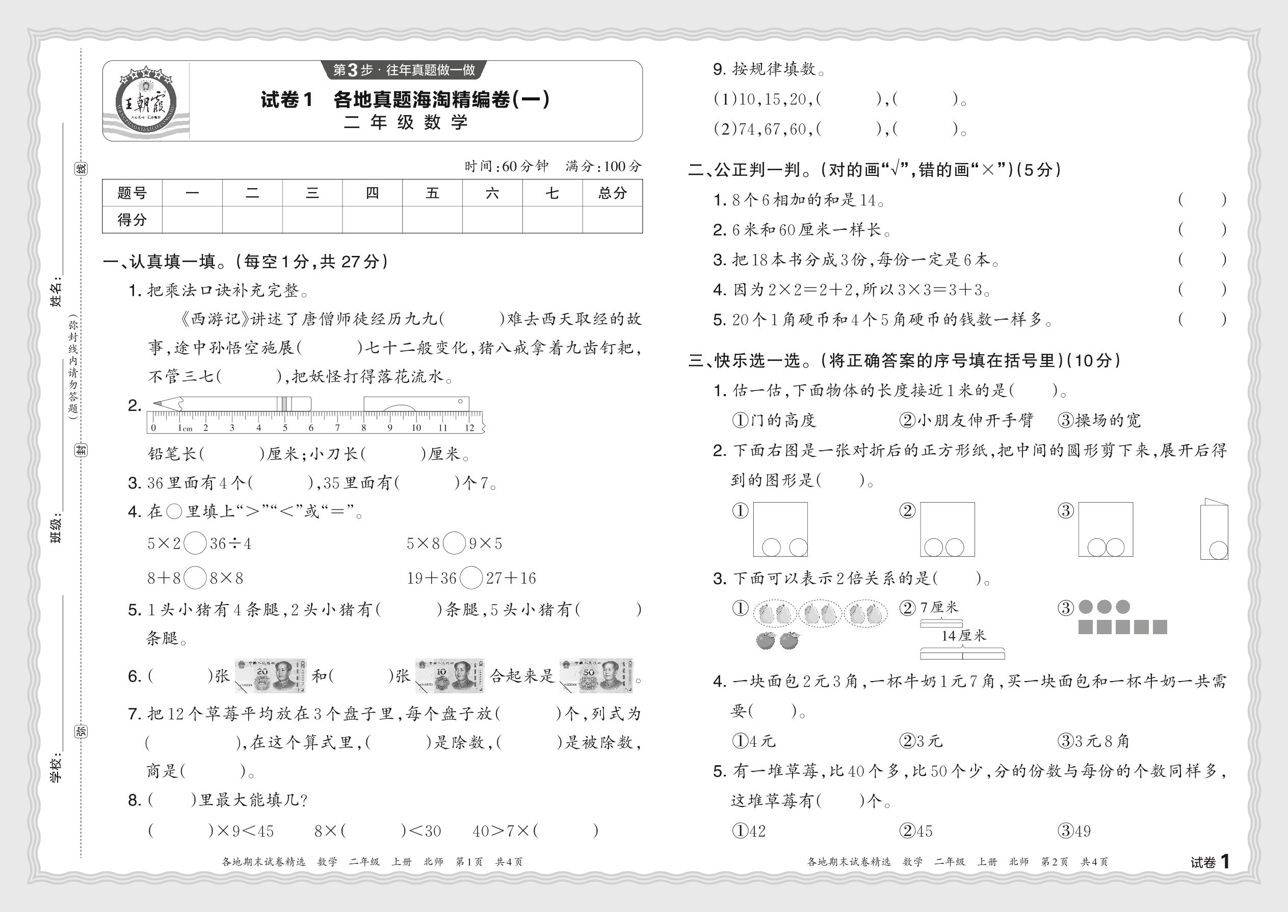 2023秋上册二年级数学北师版 各地真题海淘精编卷(一)JX