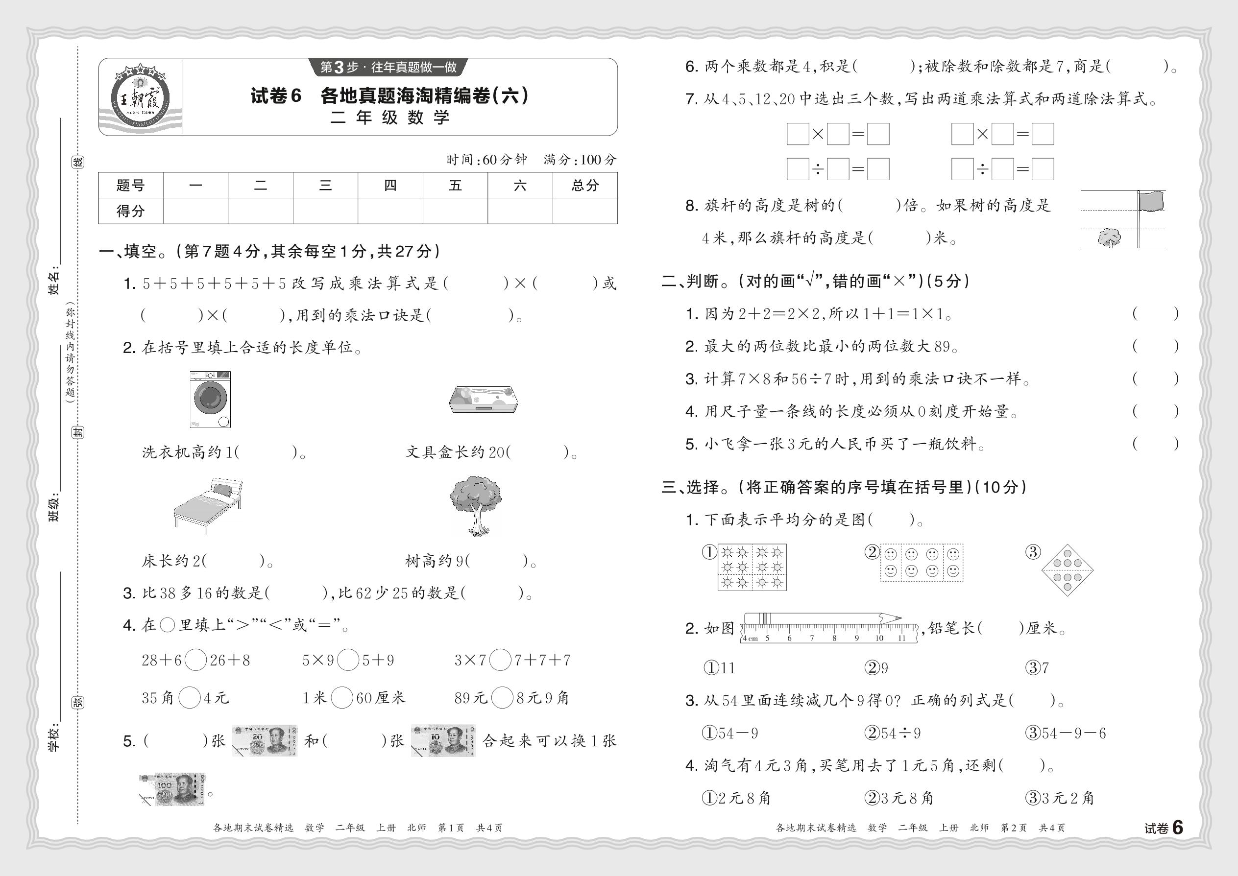 2023秋上册二年级数学北师版 各地真题海淘精编卷(六)JX