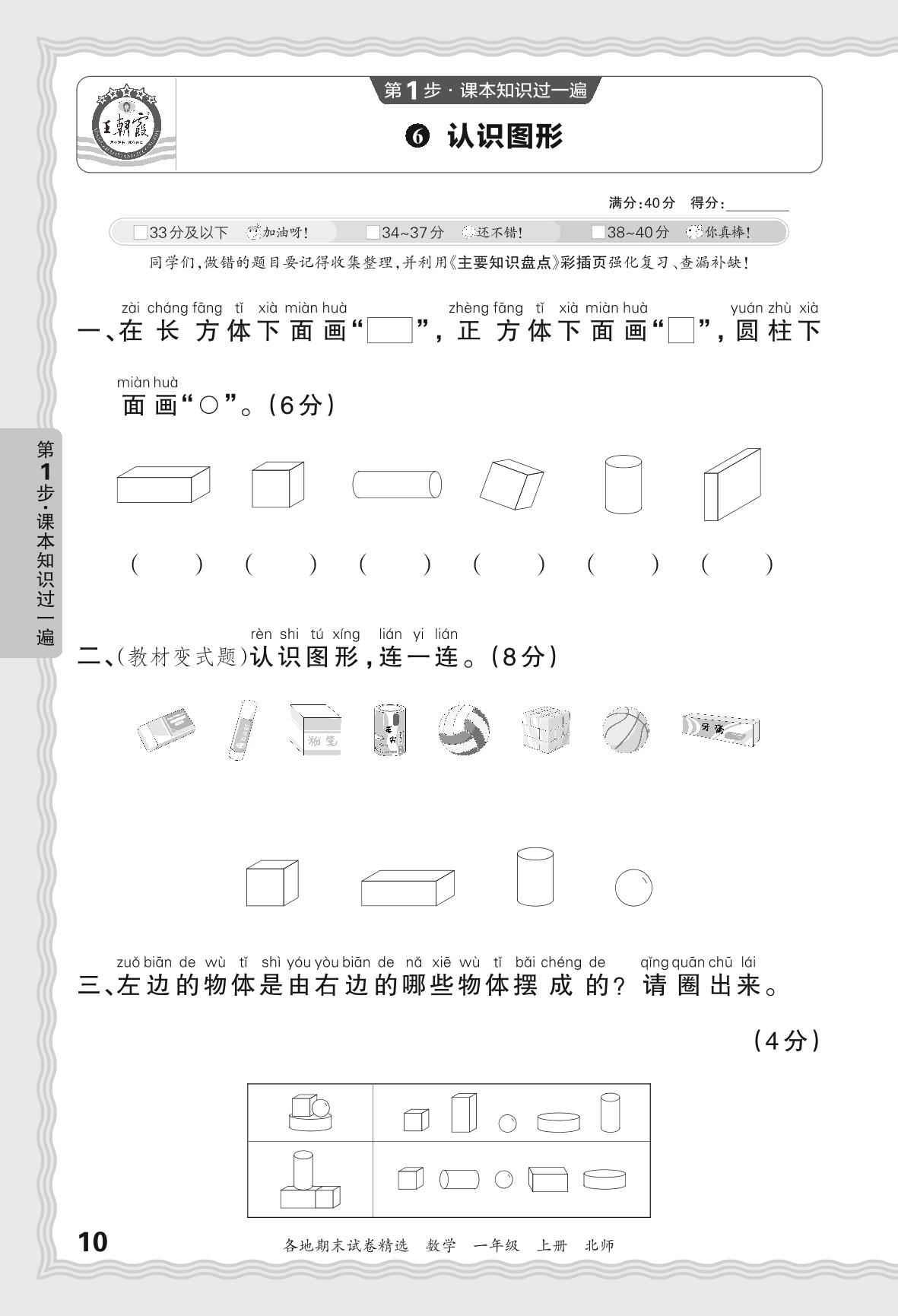 2023秋上册一年级数学北师版 期末过课本JX版·认识图形【6】