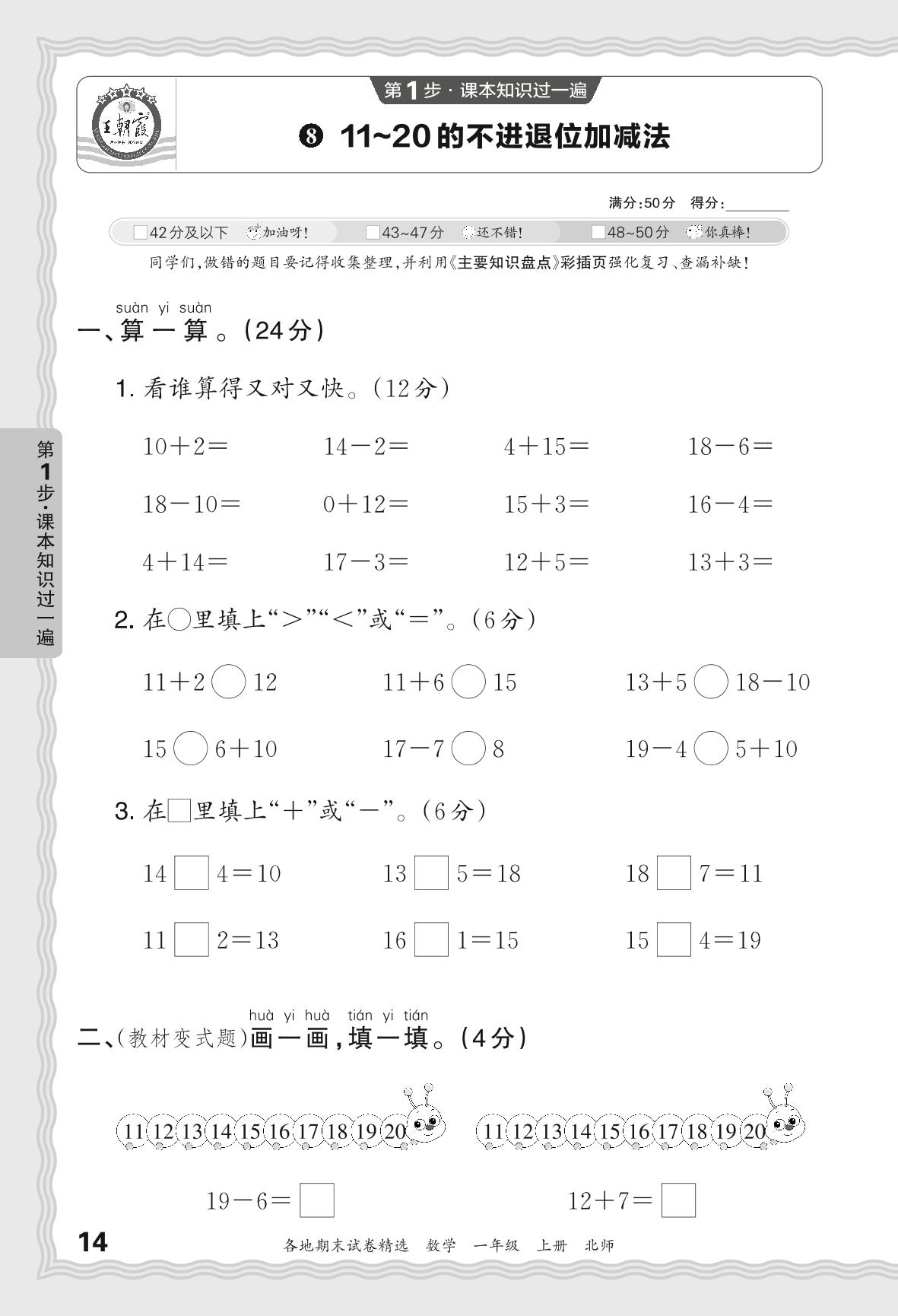 2023秋上册一年级数学北师版 期末过课本JX版·11-20的不进退位加减法【8】