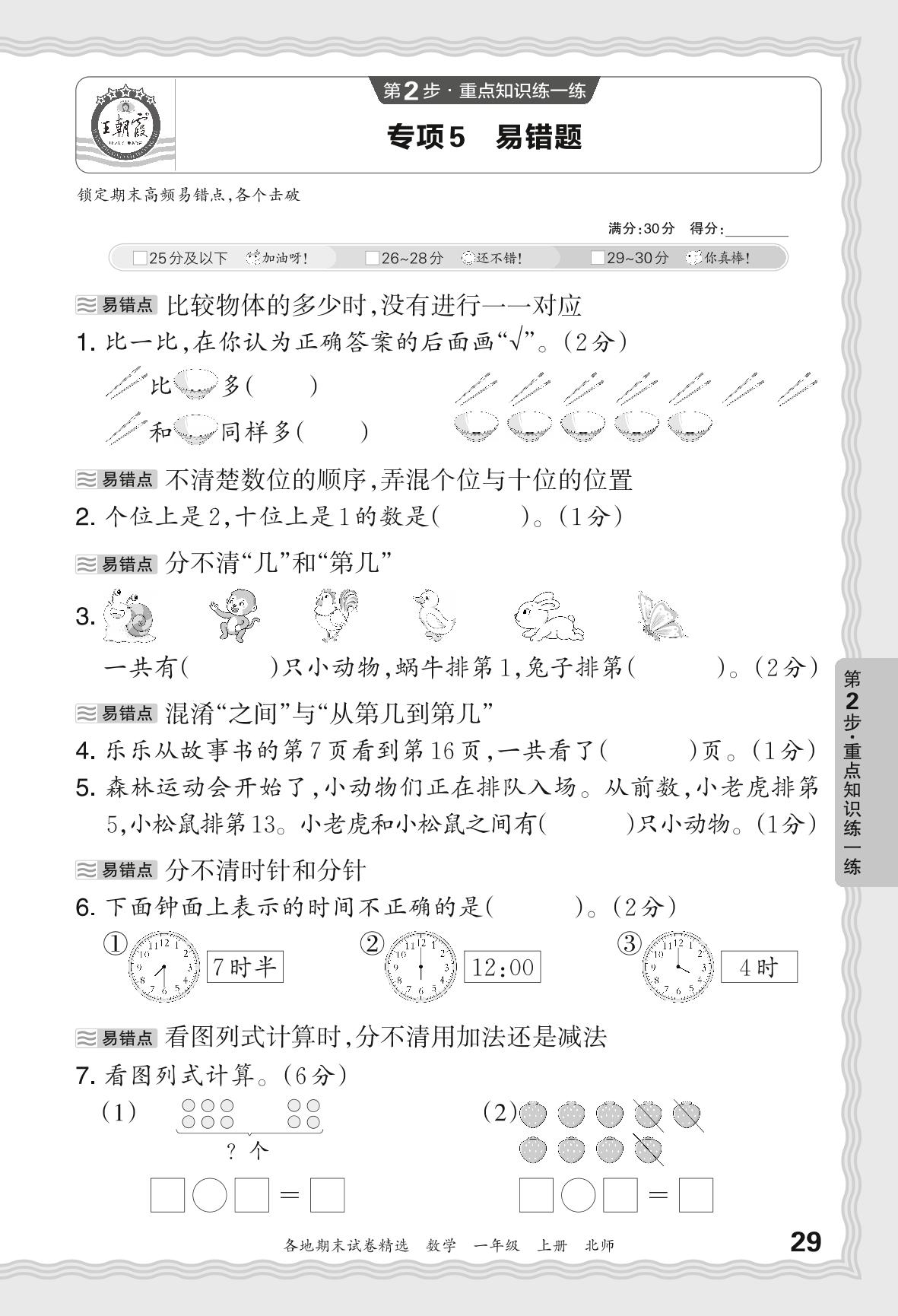 2023秋上册一年级数学北师版 期末专项卷JX版·易错题【5】