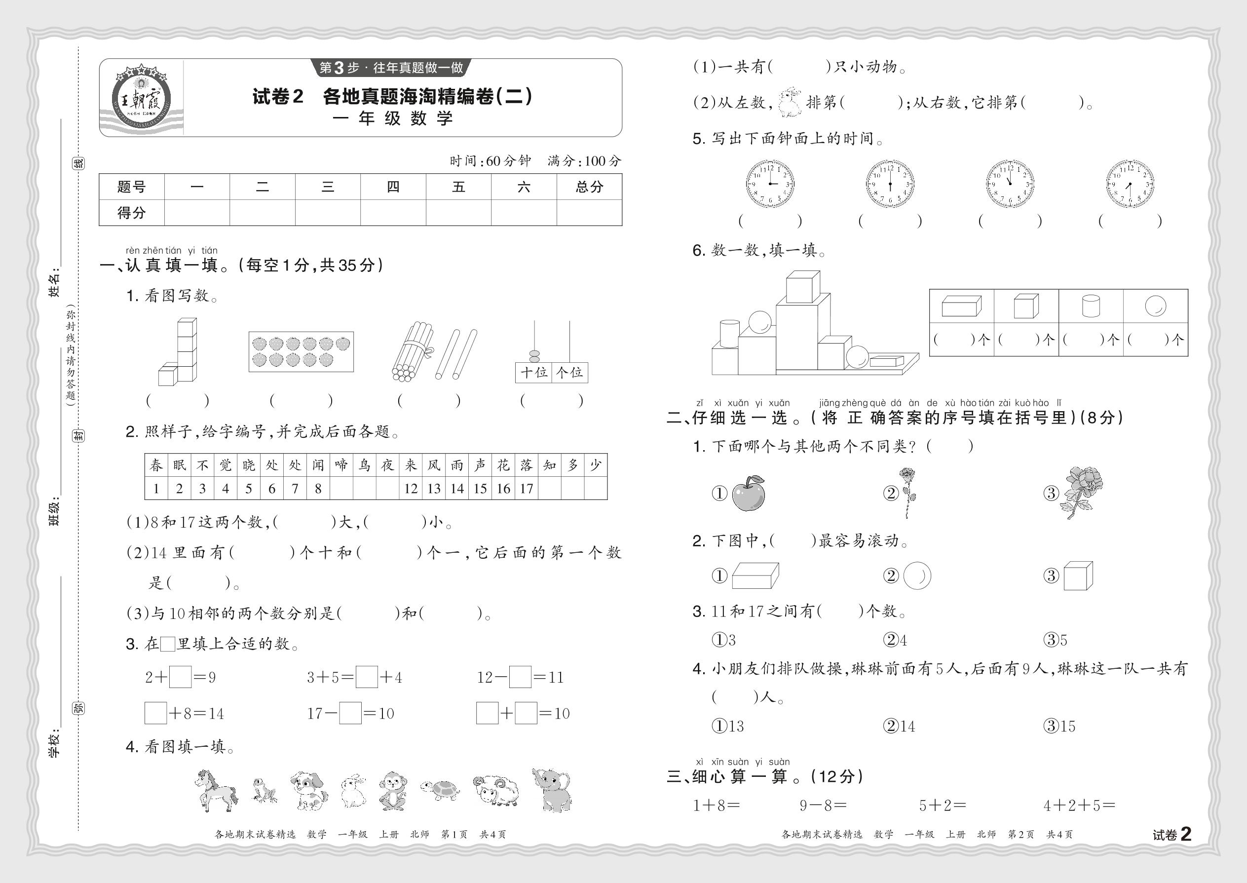 2023秋上册一年级数学北师版 各地真题海淘精编卷(二)JX