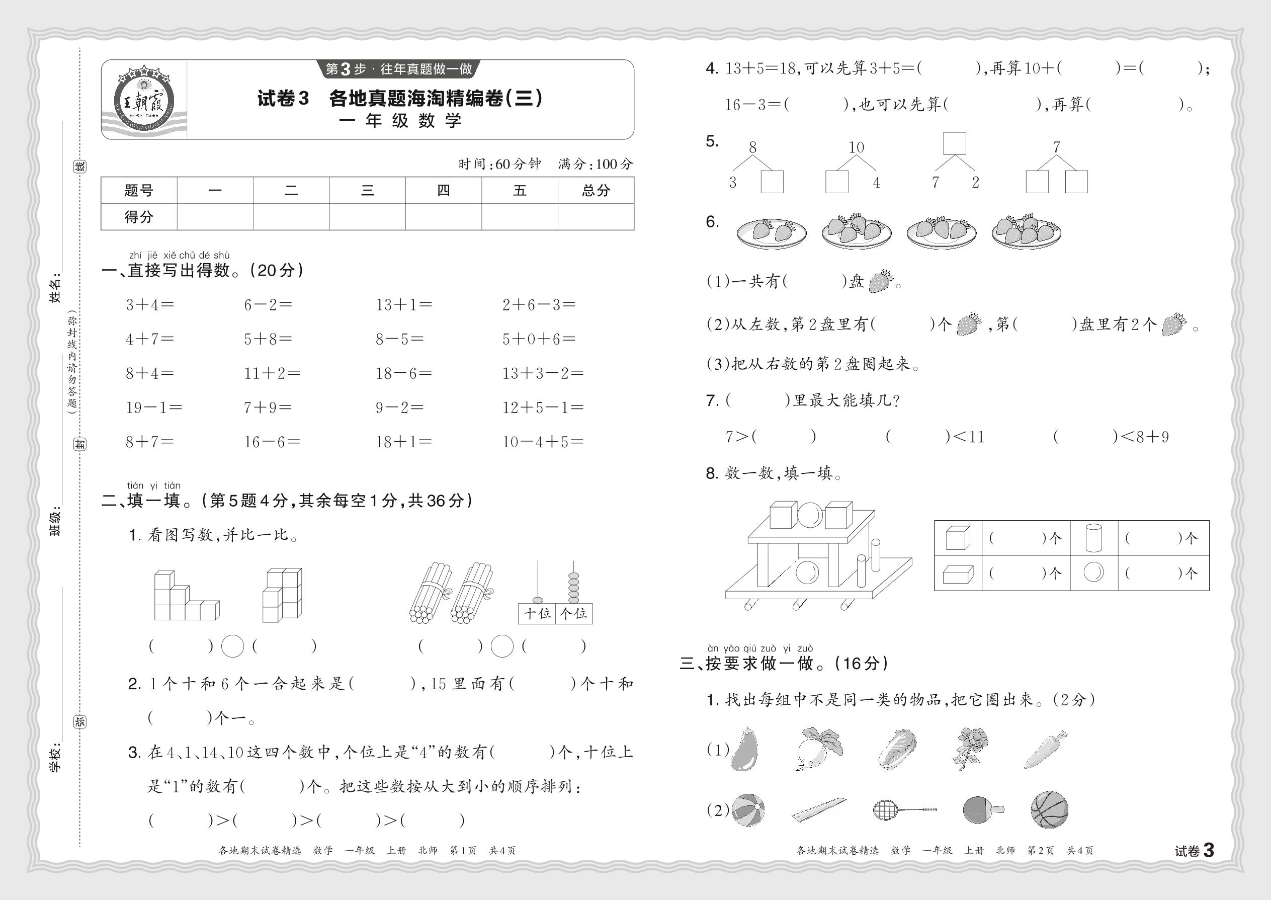 2023秋上册一年级数学北师版 各地真题海淘精编卷(三)JX