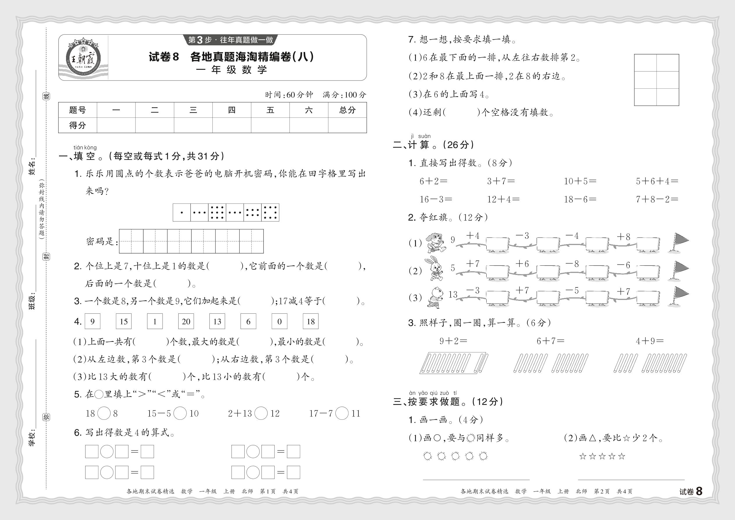 2023秋上册一年级数学北师版 各地真题海淘精编卷(八)JX