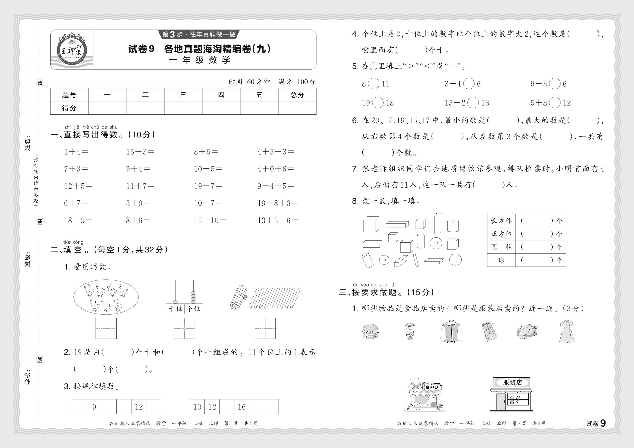 2023秋上册一年级数学北师版 各地真题海淘精编卷(九)JX