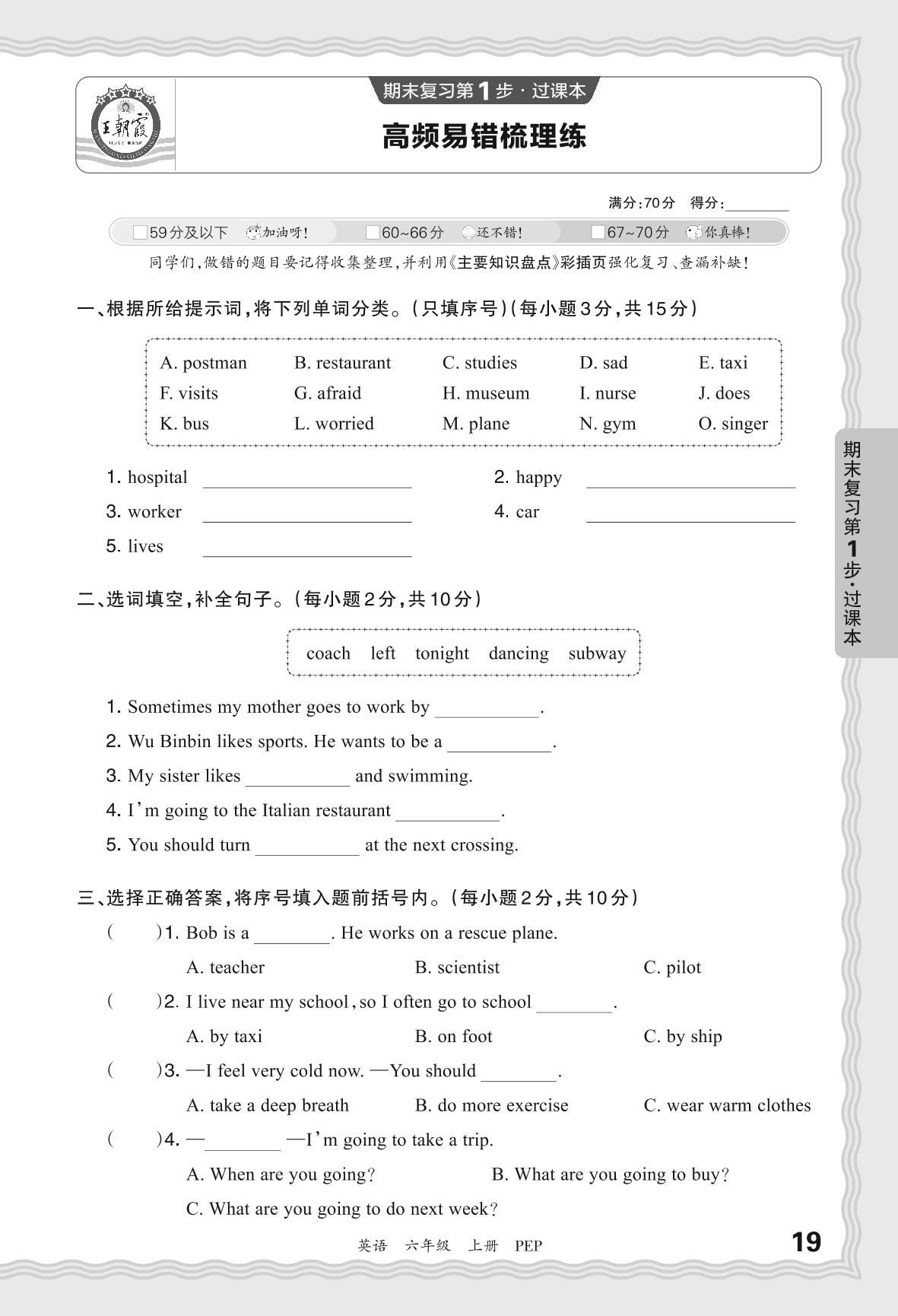 2023秋上册六年级英语人教PEP版 期末过课本·高频易错梳理练