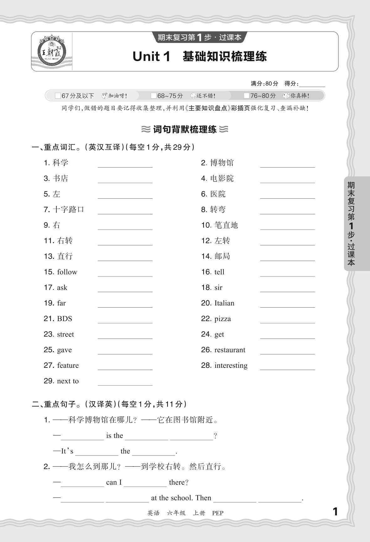 2023秋上册六年级英语人教PEP版 期末过课本·Unit 1 基础知识梳理练