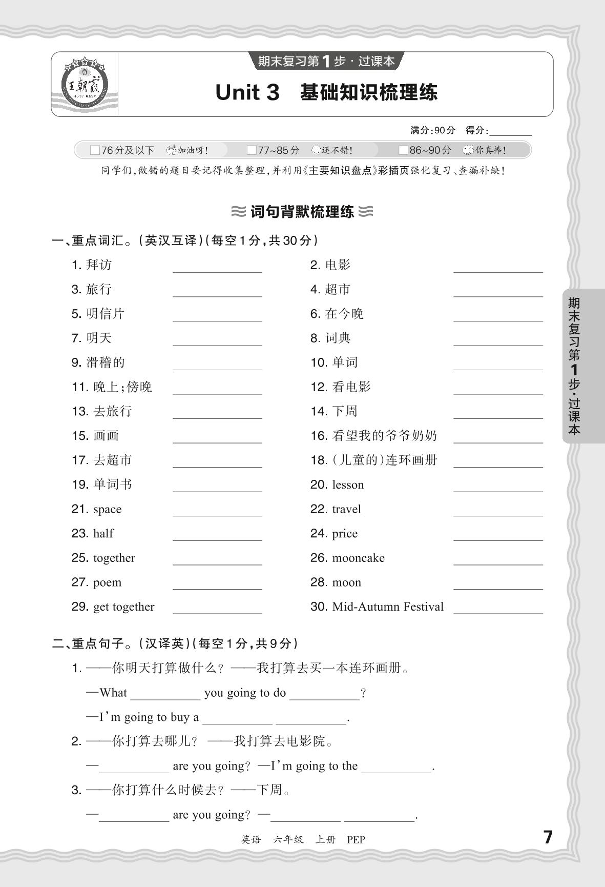 2023秋上册六年级英语人教PEP版 期末过课本·Unit 3 基础知识梳理练