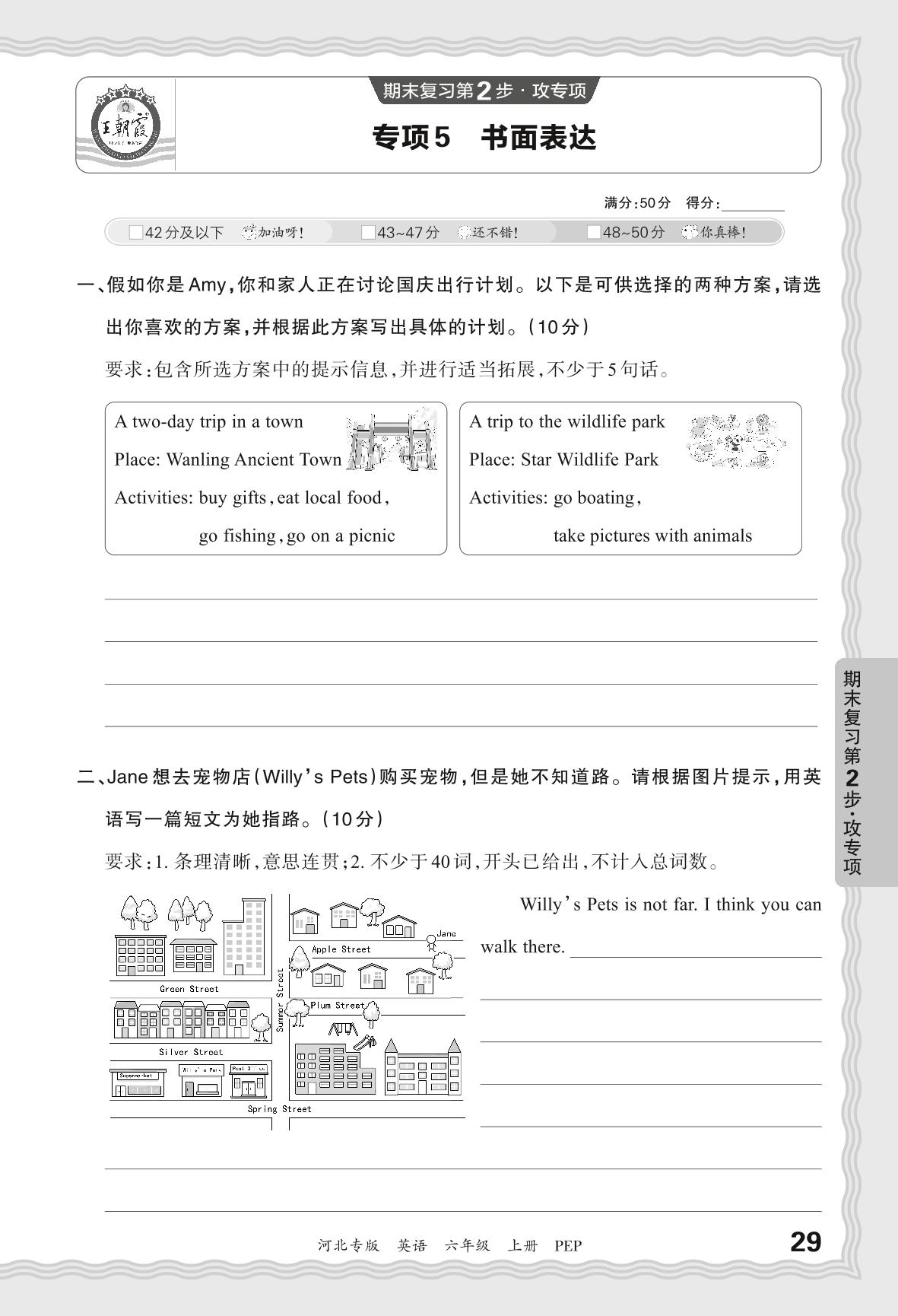 2023秋上册六年级英语人教PEP版 期末专项·书面表达【5】