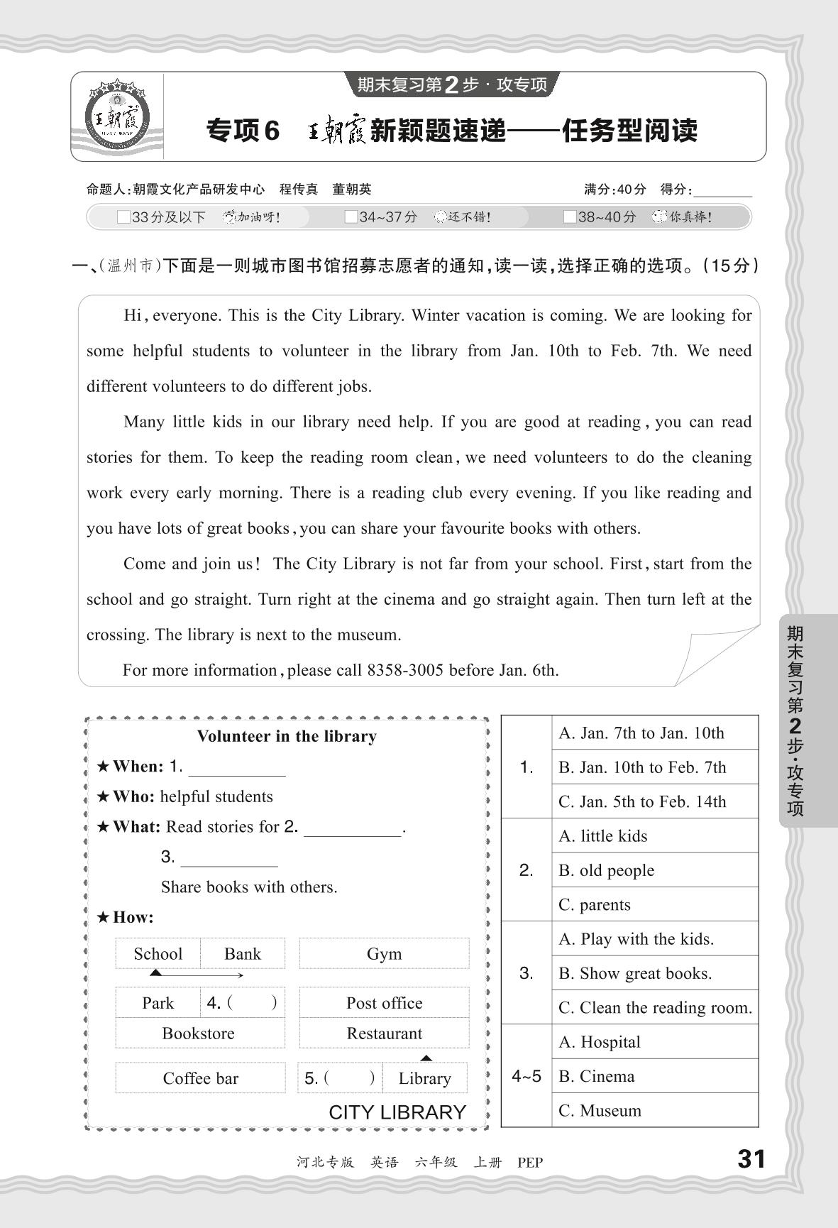 2023秋上册六年级英语人教PEP版 期末专项·王朝霞新颖题速递——任务型阅读【6】