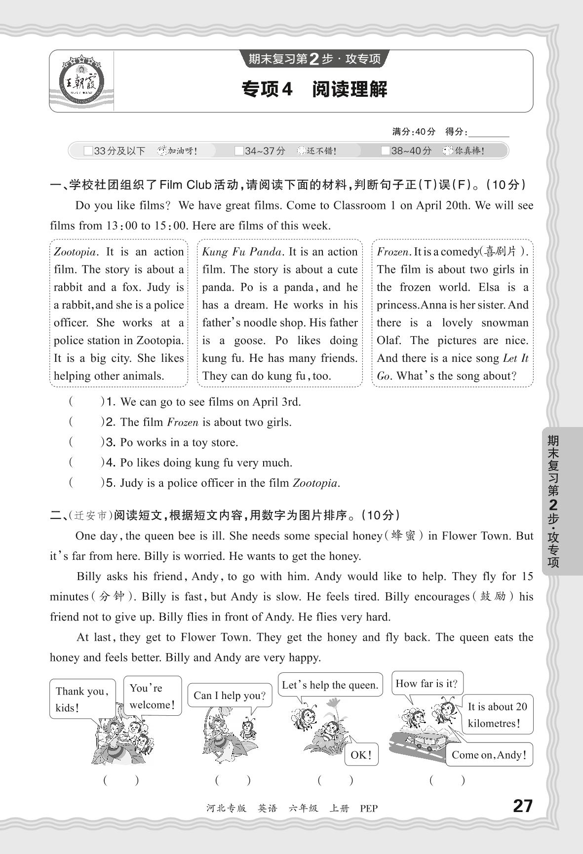 2023秋上册六年级英语人教PEP版 期末专项·阅读理解【4】