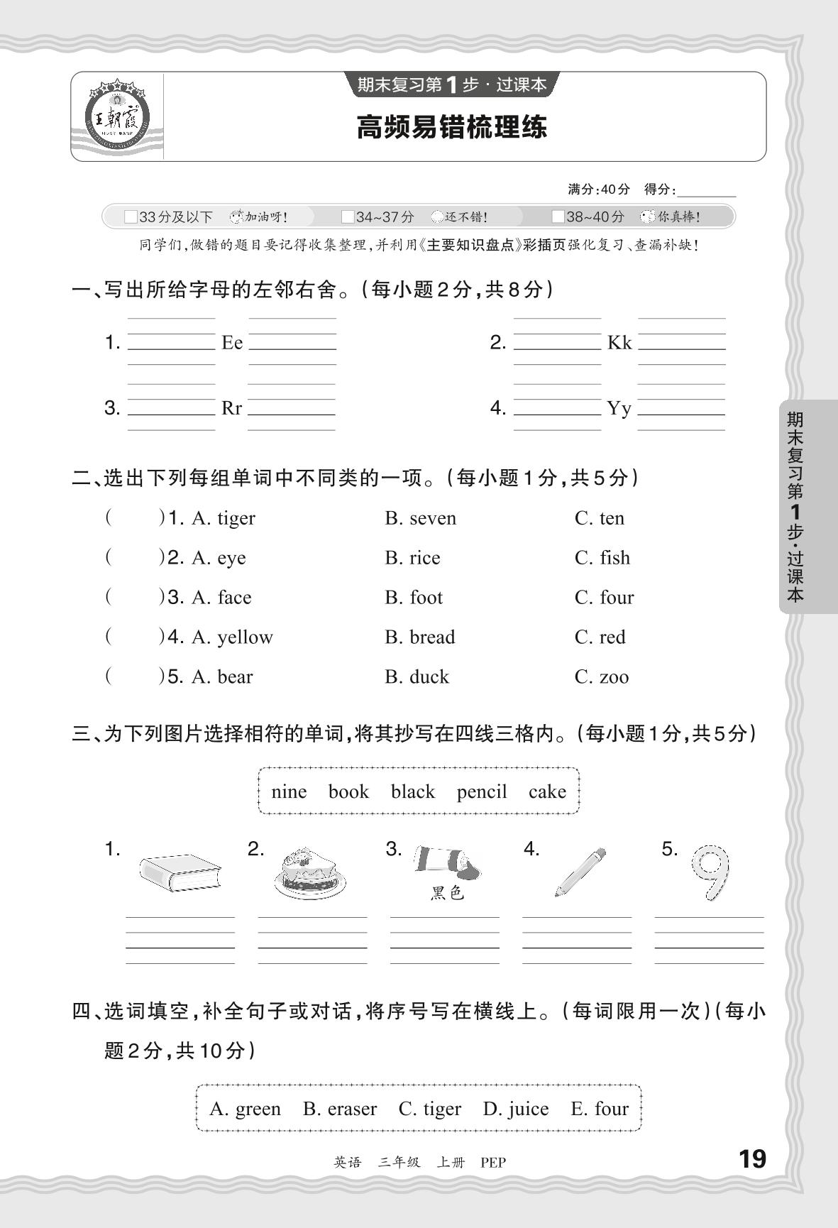 2023秋上册三年级英语人教PEP版 期末过课本·高频易错梳理练