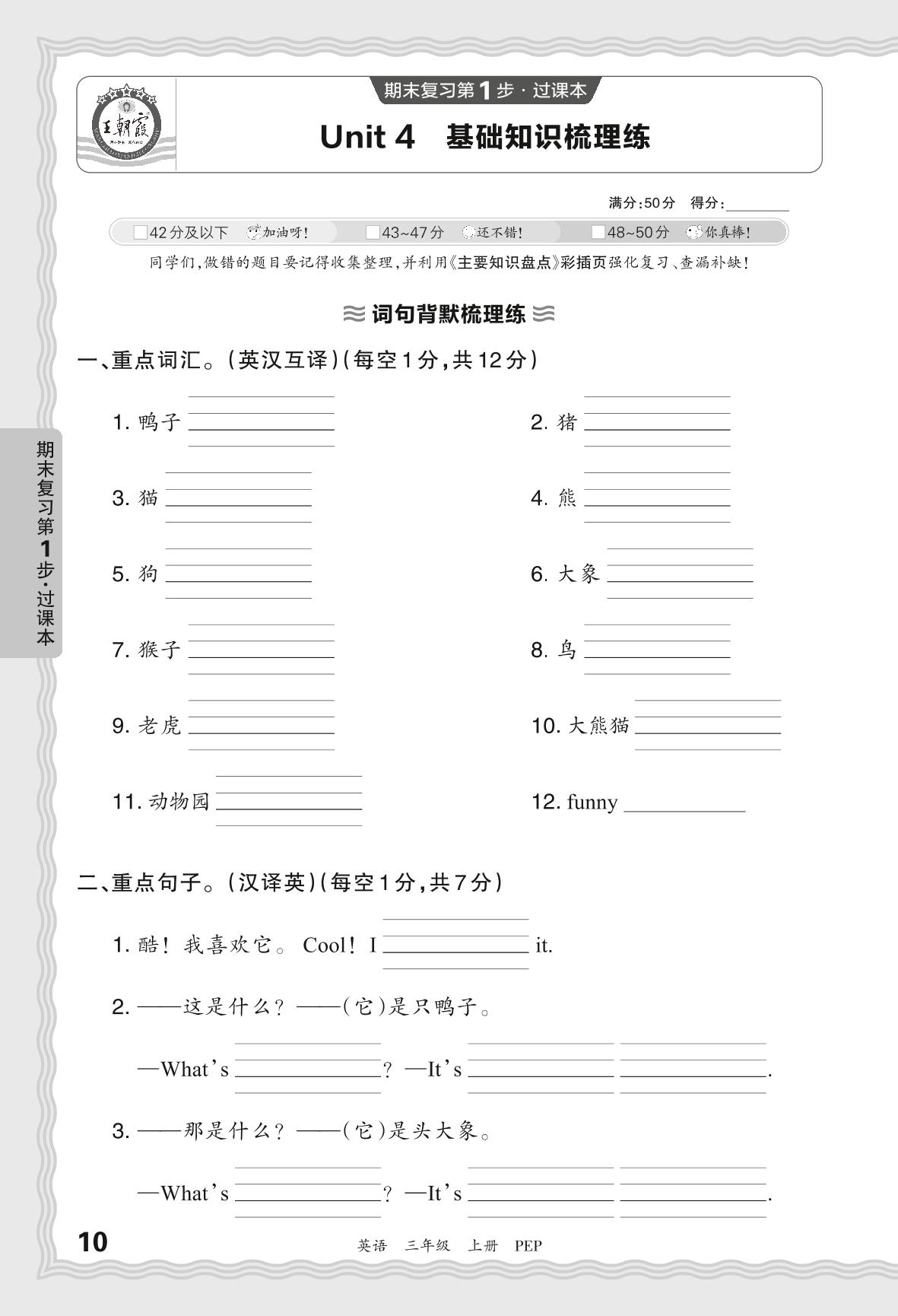 2023秋上册三年级英语人教PEP版 期末过课本·Unit 4 基础知识梳理练