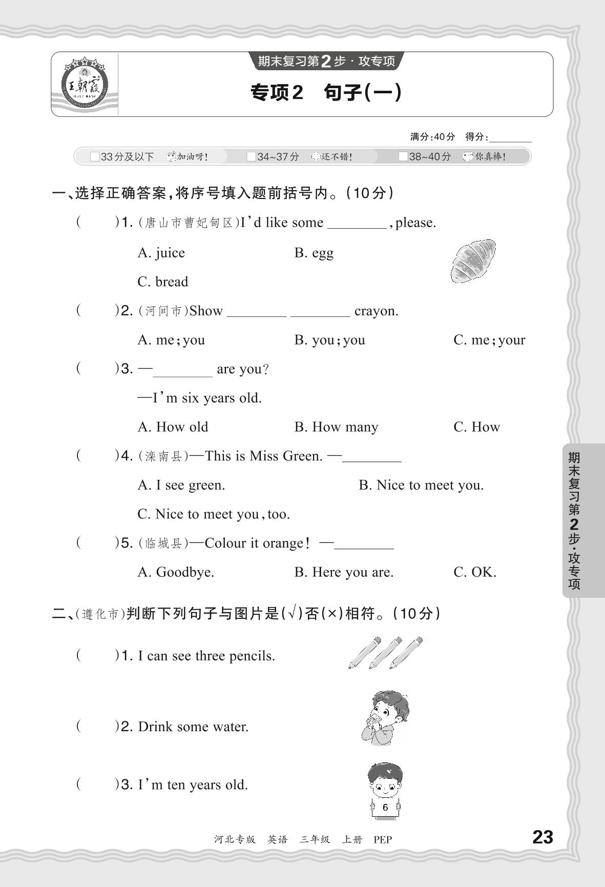 2023秋上册三年级英语人教PEP版 期末专项·句子(一)【2】
