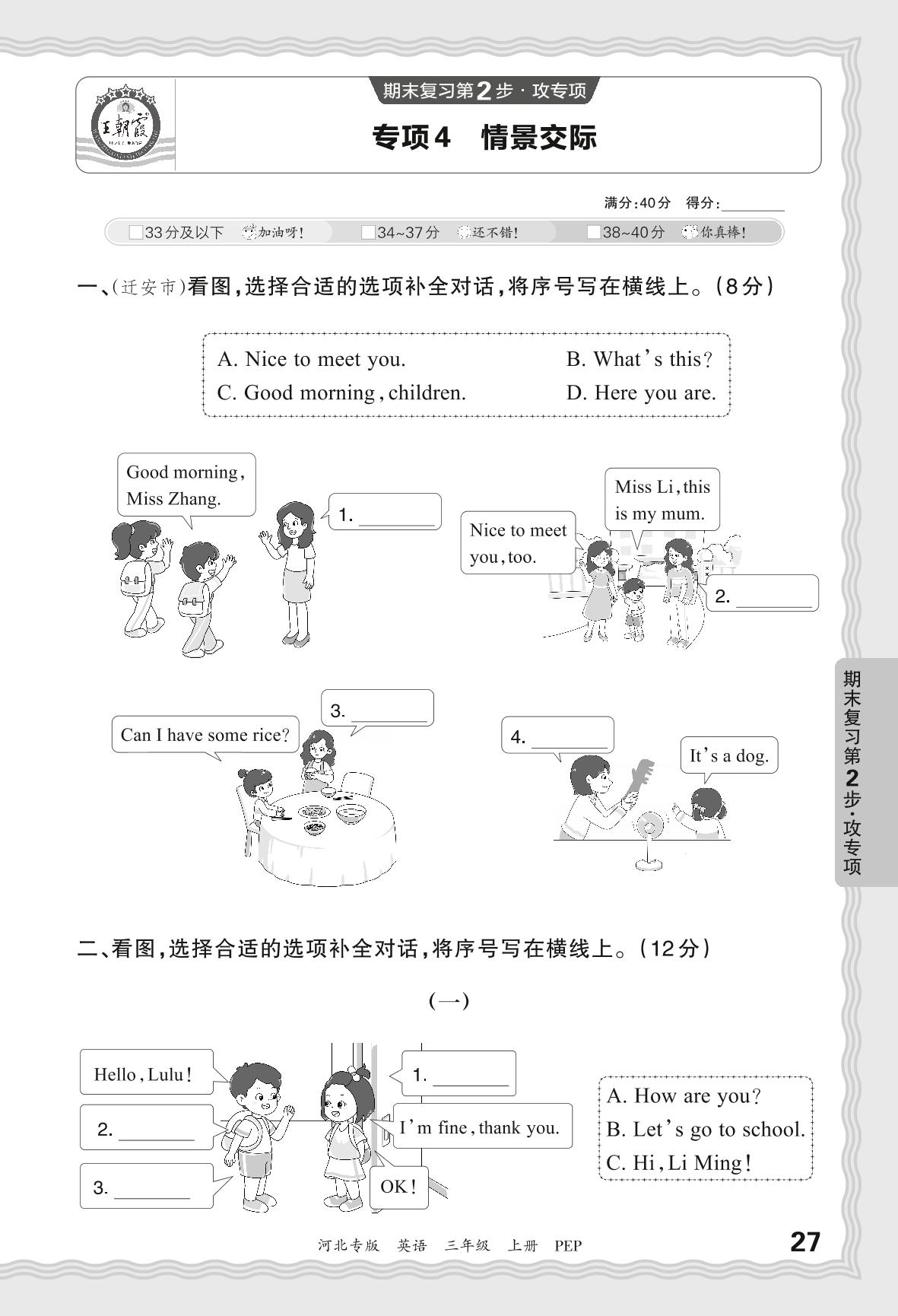 2023秋上册三年级英语人教PEP版 期末专项·情景交际【4】