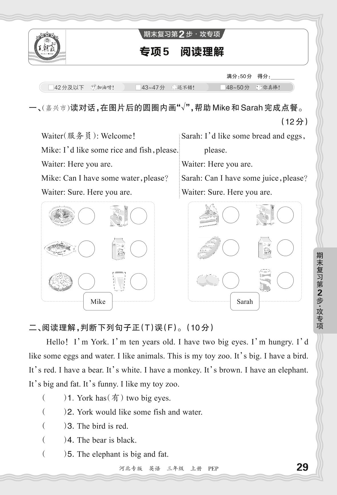 2023秋上册三年级英语人教PEP版 期末专项·阅读理解【5】