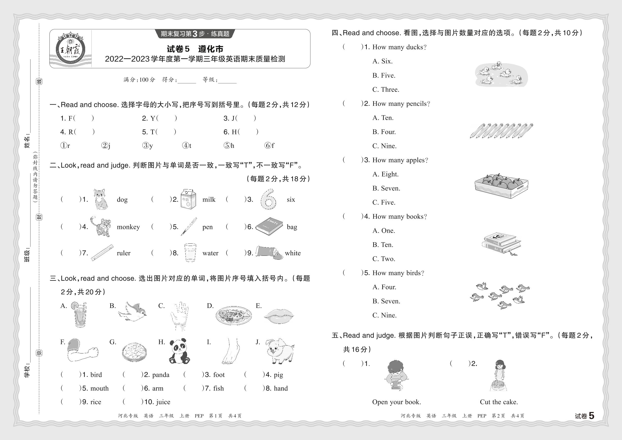 河北省唐山市遵化市2022—2023学年度第一学期三年级英语期末质量检测(PEP版)【5】
