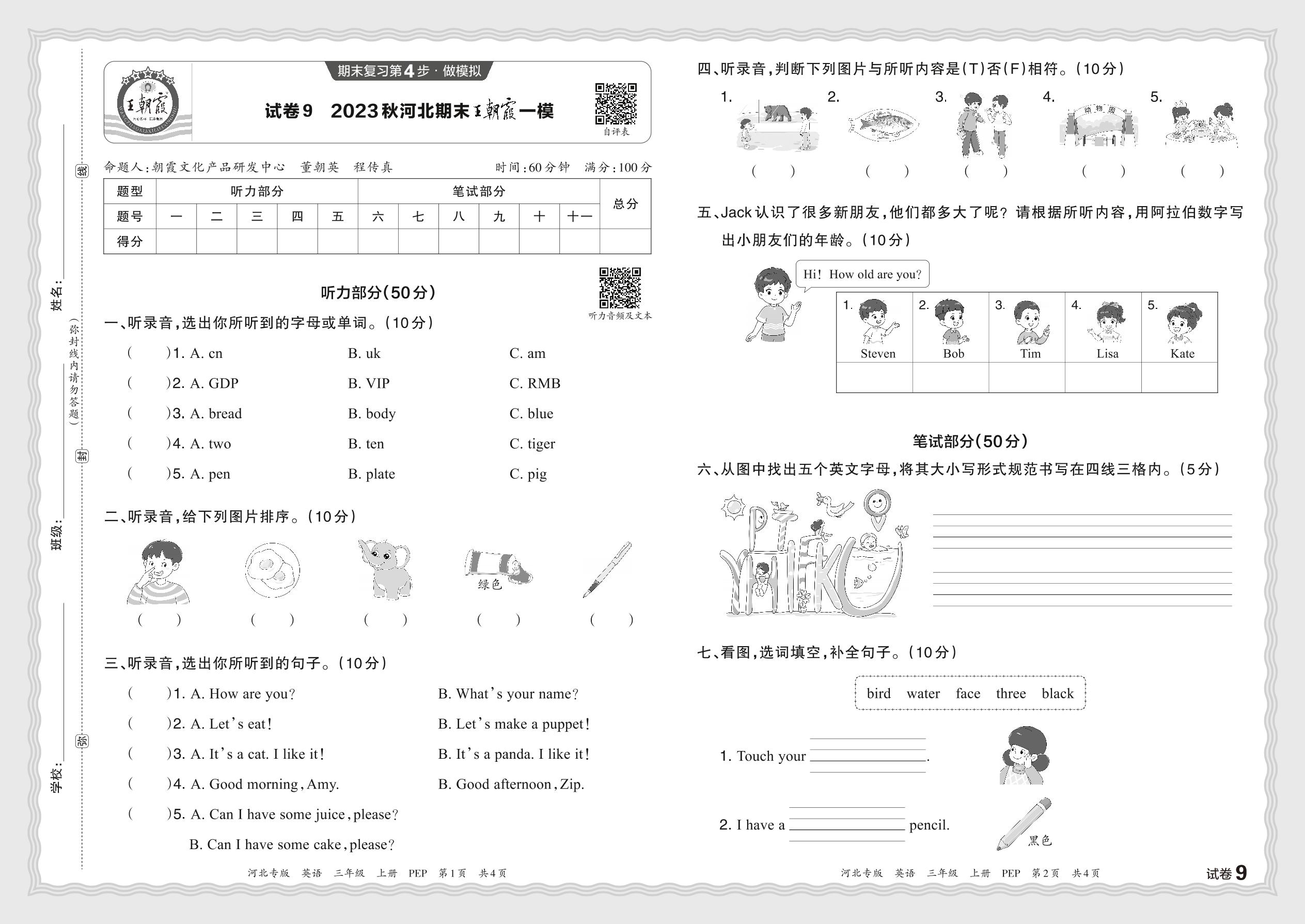 2023秋上册三年级英语人教PEP版 河北期末王朝霞一模